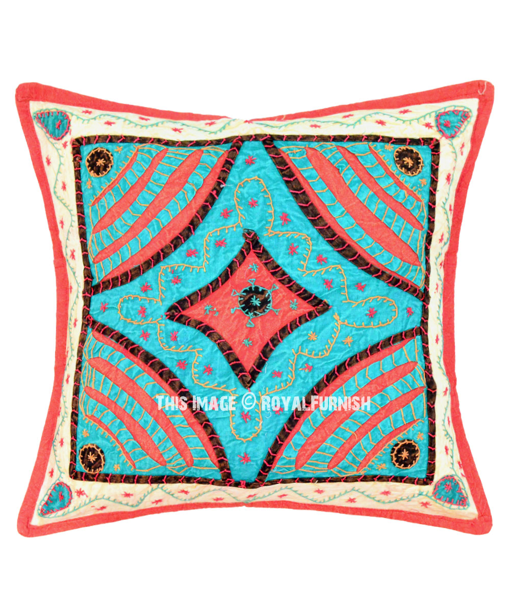 Create stunning boho-chic home decor with colorful intricate handcrafted throw pillow. Made of 100% cotton and handcrafted in India features colorful embroidered design and pattern that add luxury and beauty to living room sofa and bedroom interior.