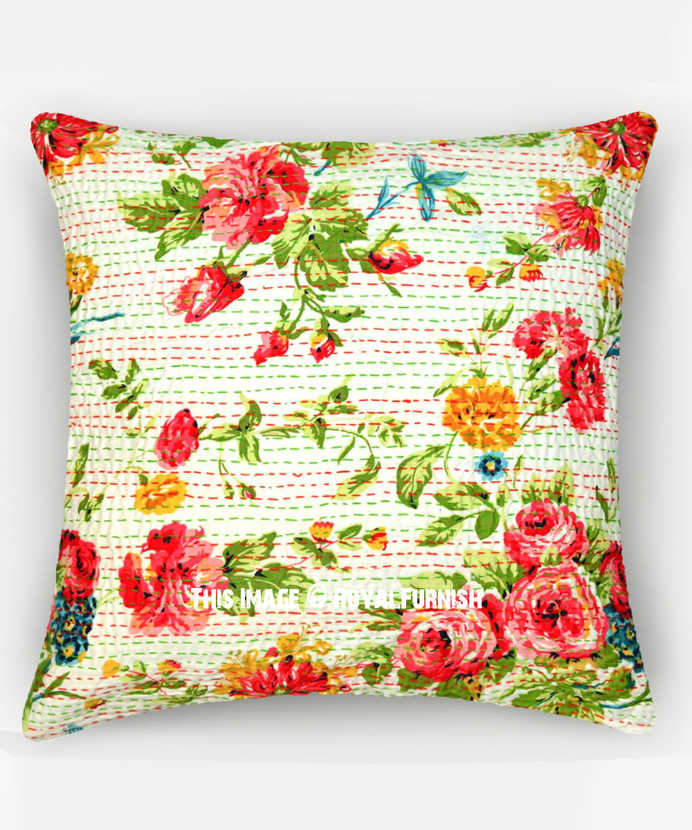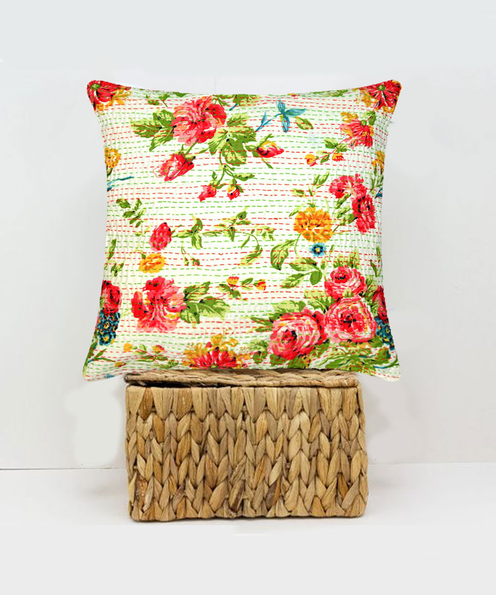 Add some brightness and freshness into your living room or bedroom with India made kantha throw pillow case. The soft and lustrous kantha pillow is made using 100% fine quality cotton fabric. Kantha is traditional art work used in rural area of India. It will add instant fun into the room with its vivid presence.
