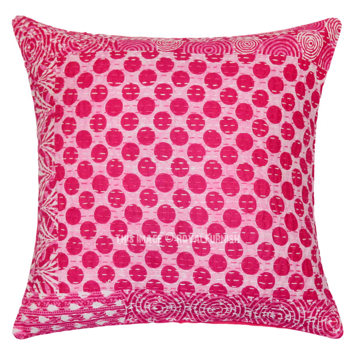16" Pink Bohemian Kantha Throw Pillow Cushion Cover