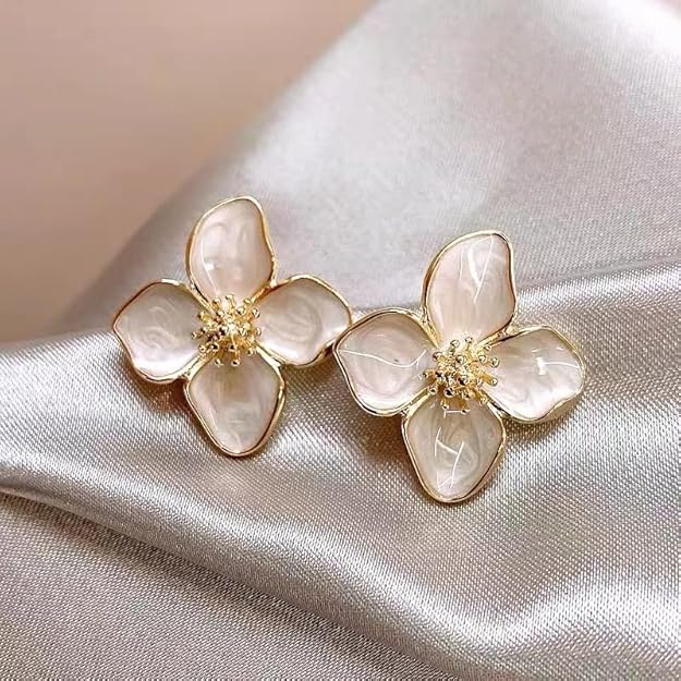 White Flower Earring Floral Korean Earrings Stud Affordable Special Tops Boho Trendy GenZ Jewelry