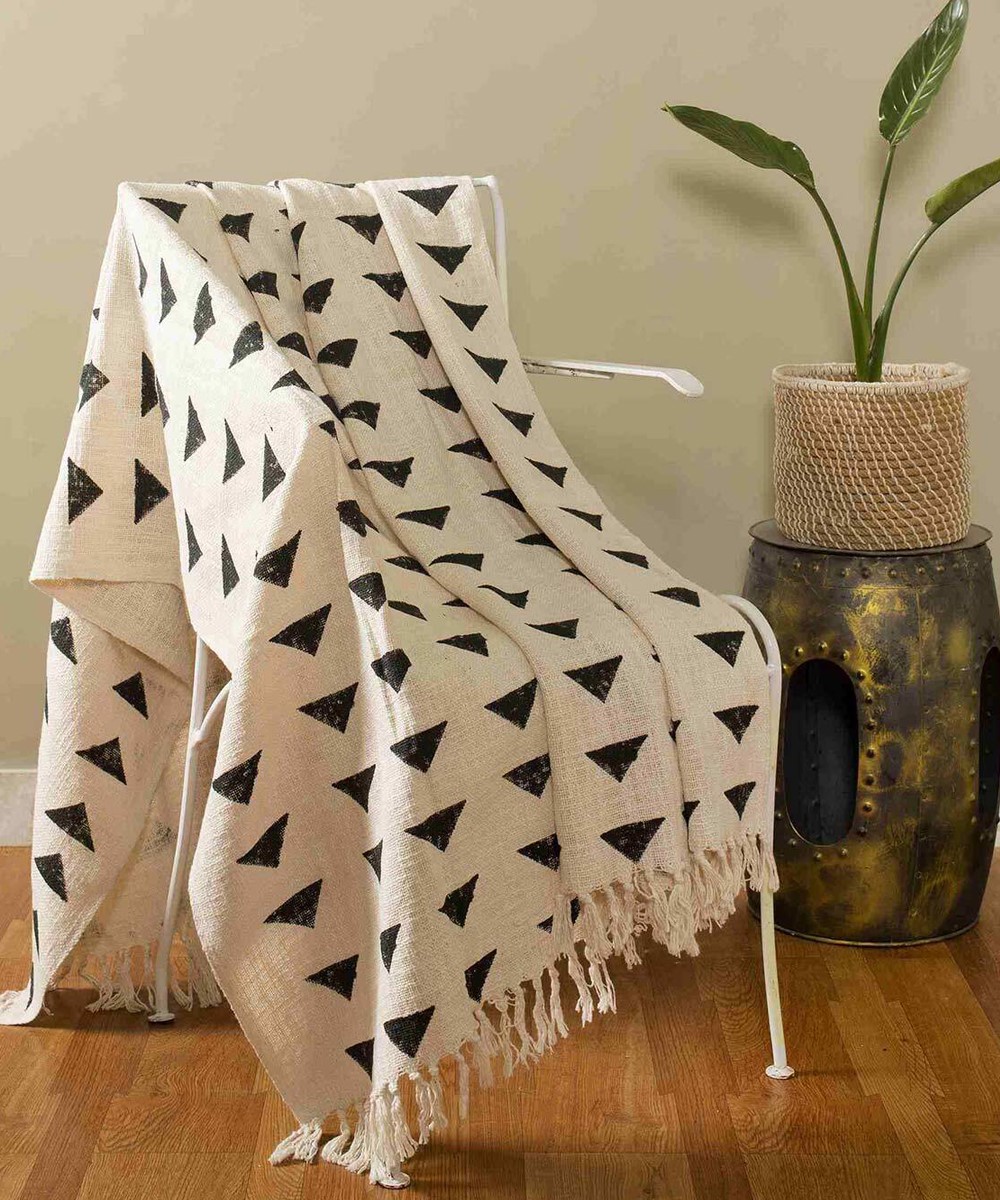 Traditional Triangle Throw Natural Cotton Home Sofa Couch Blanket