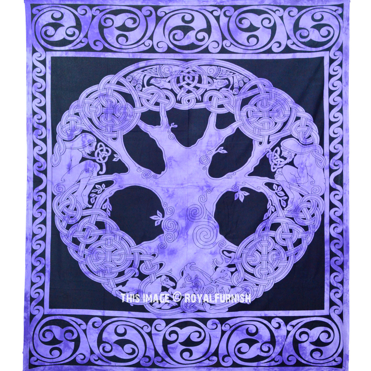 Purple Spiritual Celtic Knot Designer Tie Dye Spirit Tree of Life Tapestry Mystical Wall Hanging