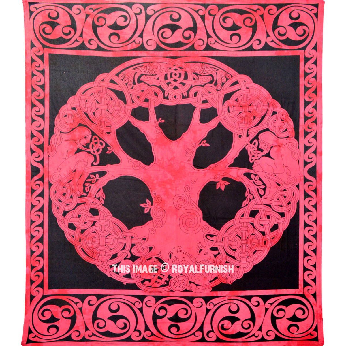 Red Spiritual Celtic Knot Designer Tie Dye Spirit Tree of Life Tapestry Mystical Wall Hanging