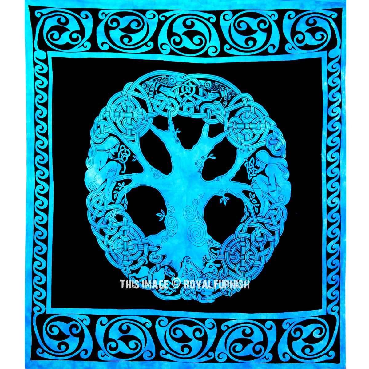 Turquoise Spiritual Celtic Knot Designer Tie Dye Spirit Tree of Life Tapestry Mystical Wall Hanging