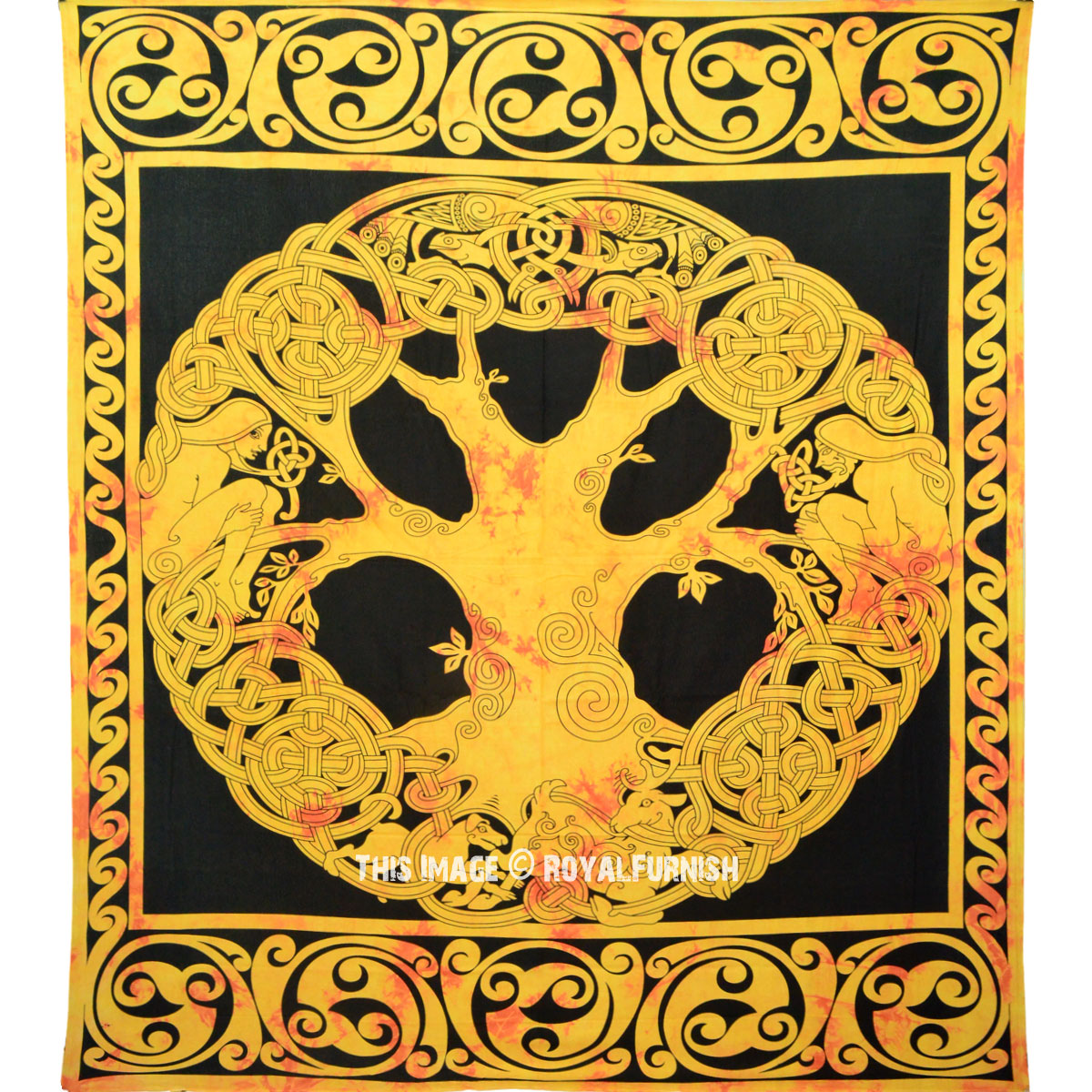 Yellow Spiritual Celtic Knot Designer Tie Dye Spirit Tree of Life Tapestry Mystical Wall Hanging