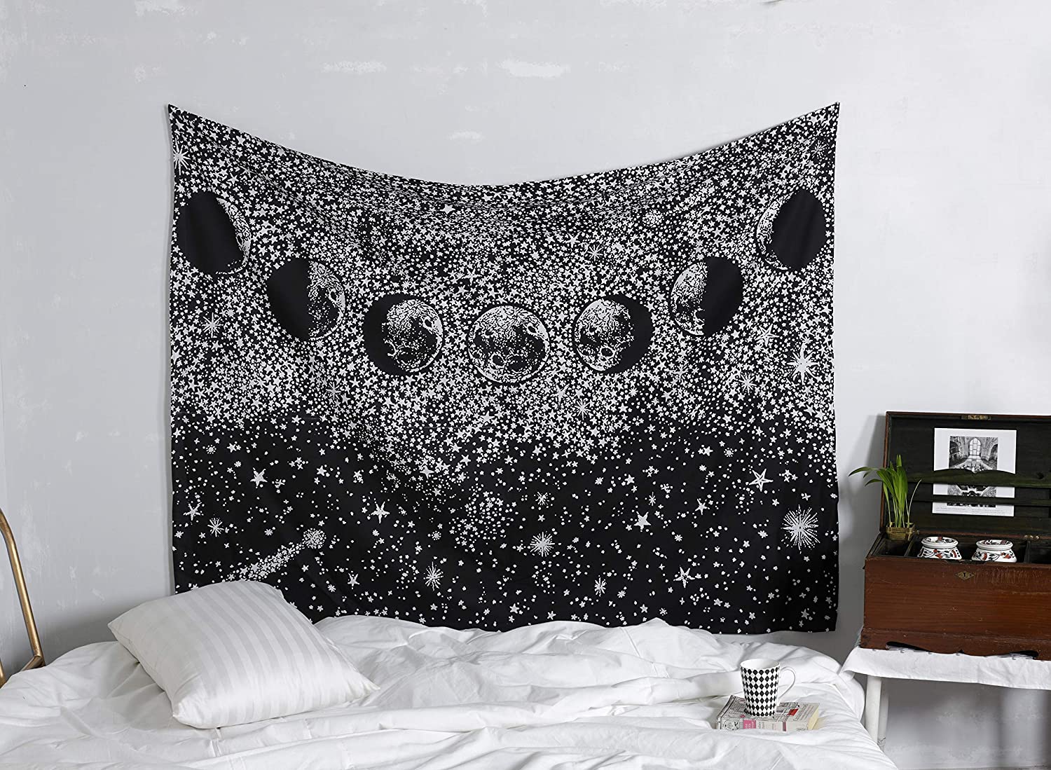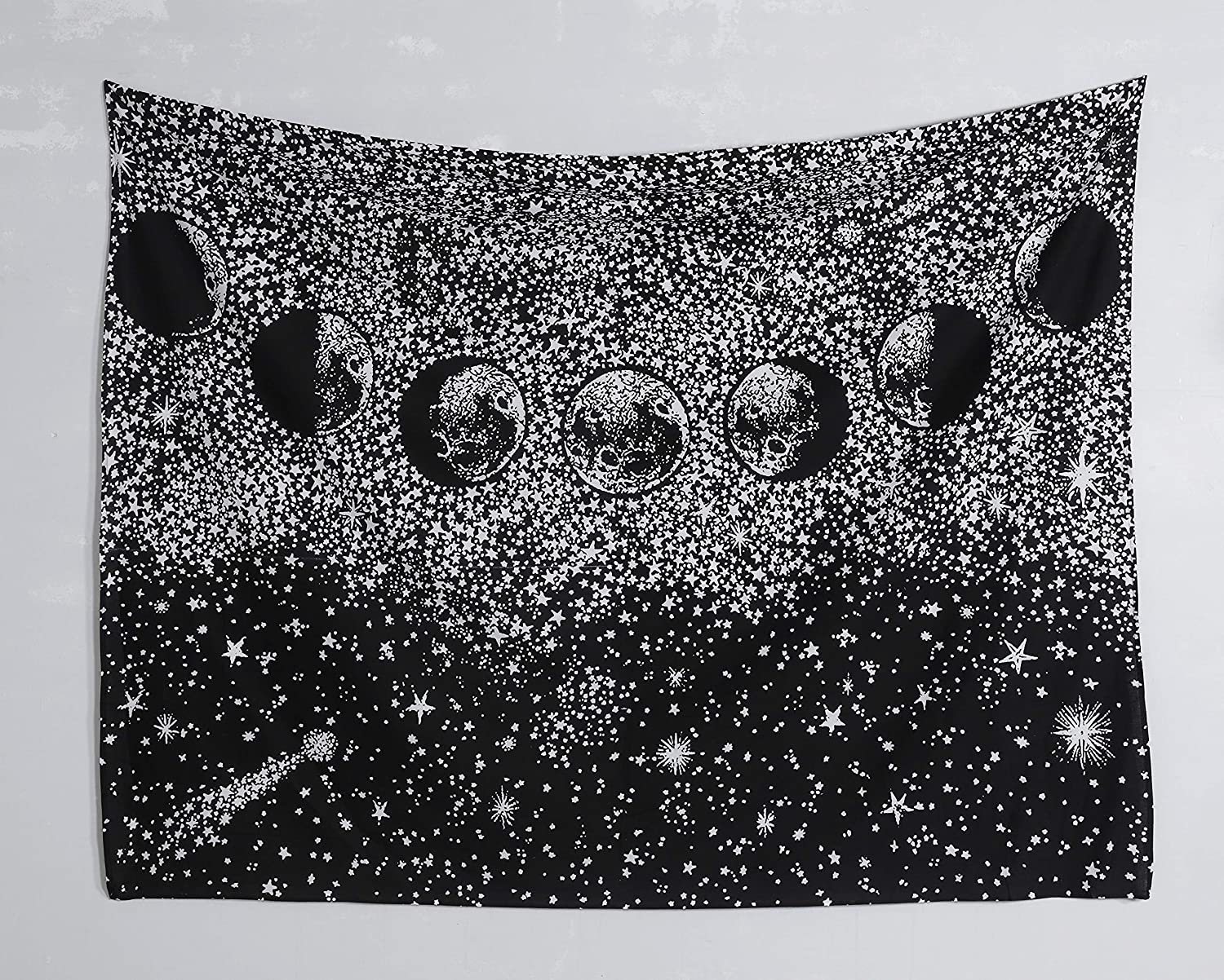 Black & White Celestial Moon Phases Tapestry Astrology Crescent Mystical Starry Lunar Wall Hanging