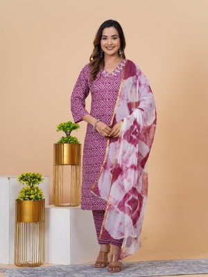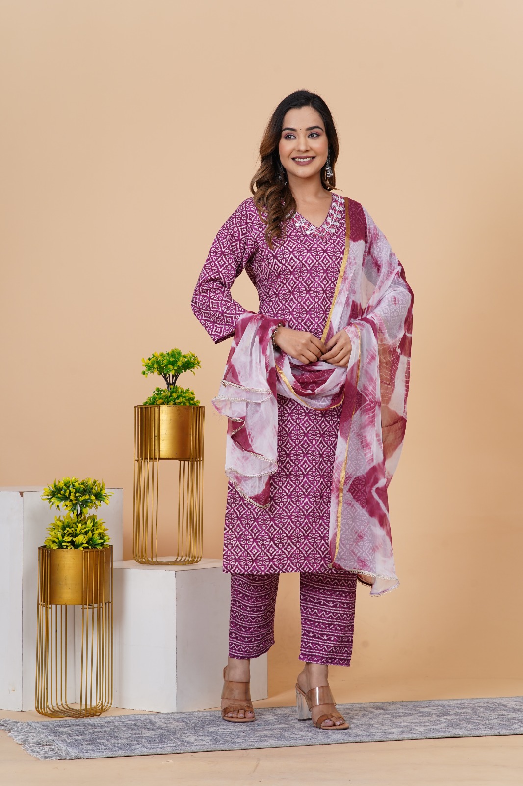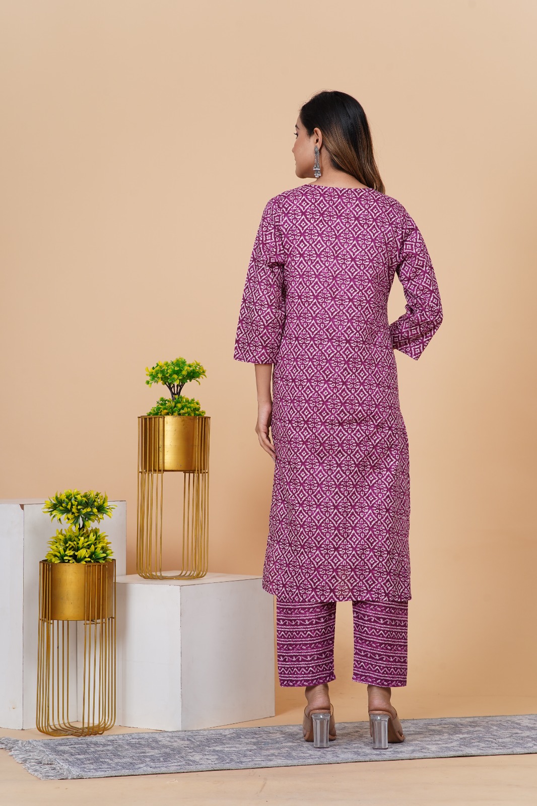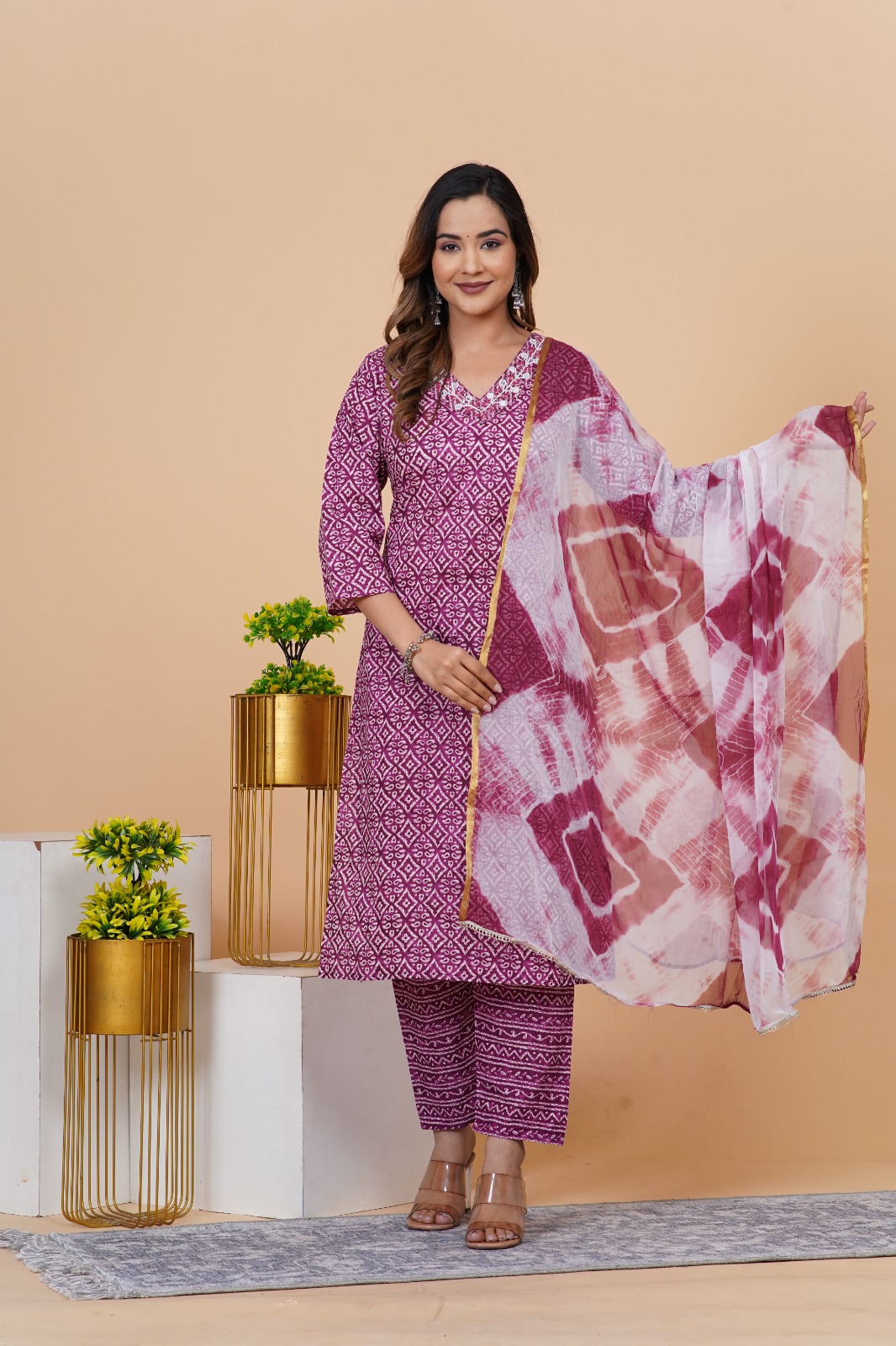 Preety Purple Cotton Kurti Pant Tie Dye Dupatta Shalwar Kameez Hand work Suit