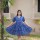 • Blue Rayon Printed Frock Style Kurti Indian Anarkali Partywear Dress for Women