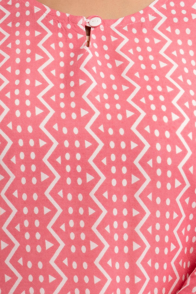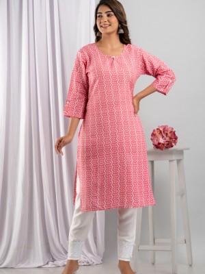 Women Straight Fit Pink Kurti With Pant Casual Top