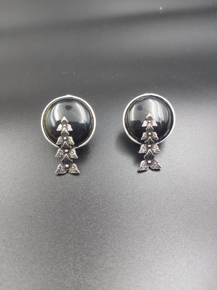 Black Stone Stud Earrings Oxidized Fashion Jewelry Earring