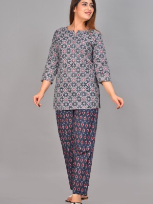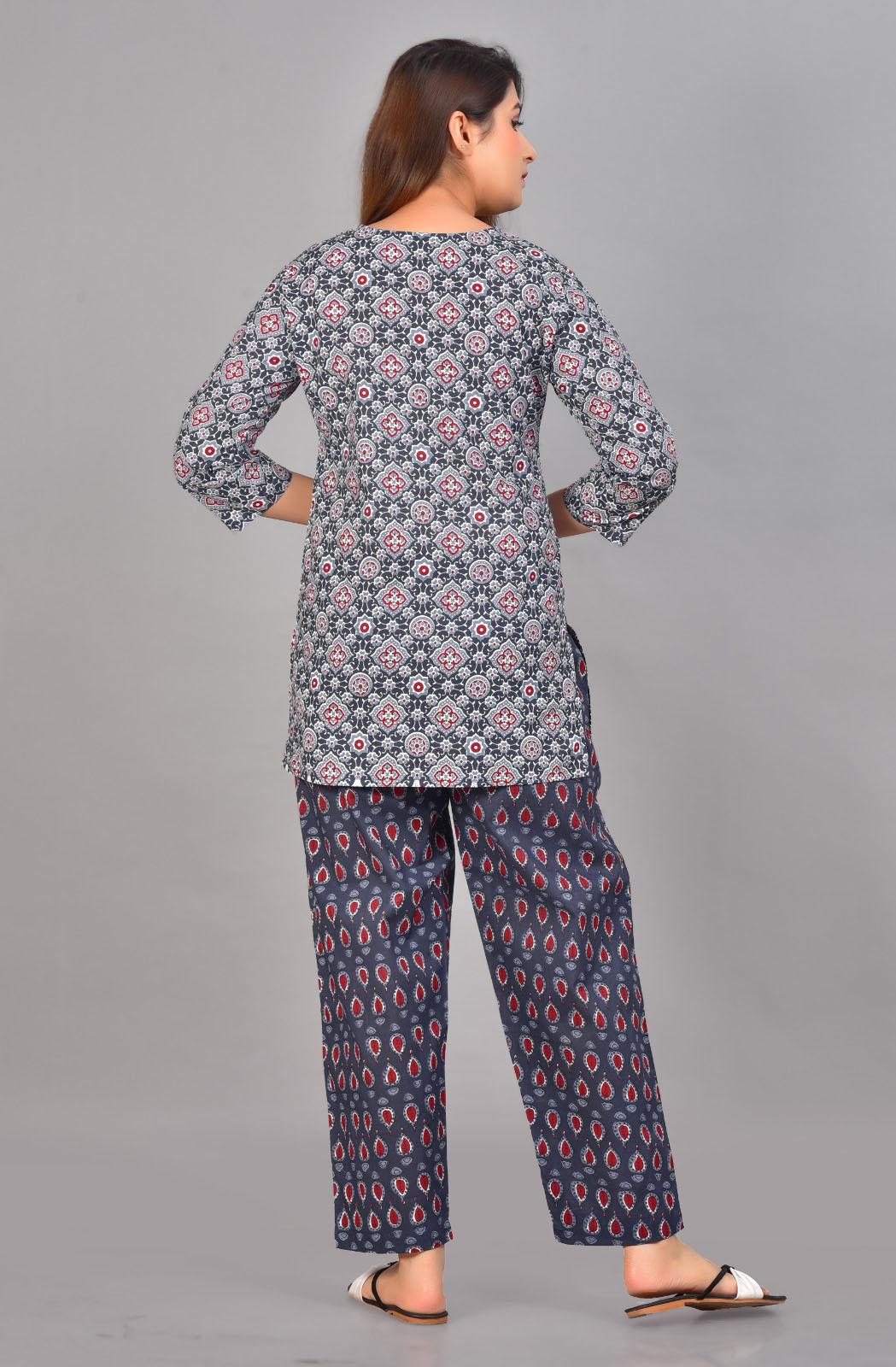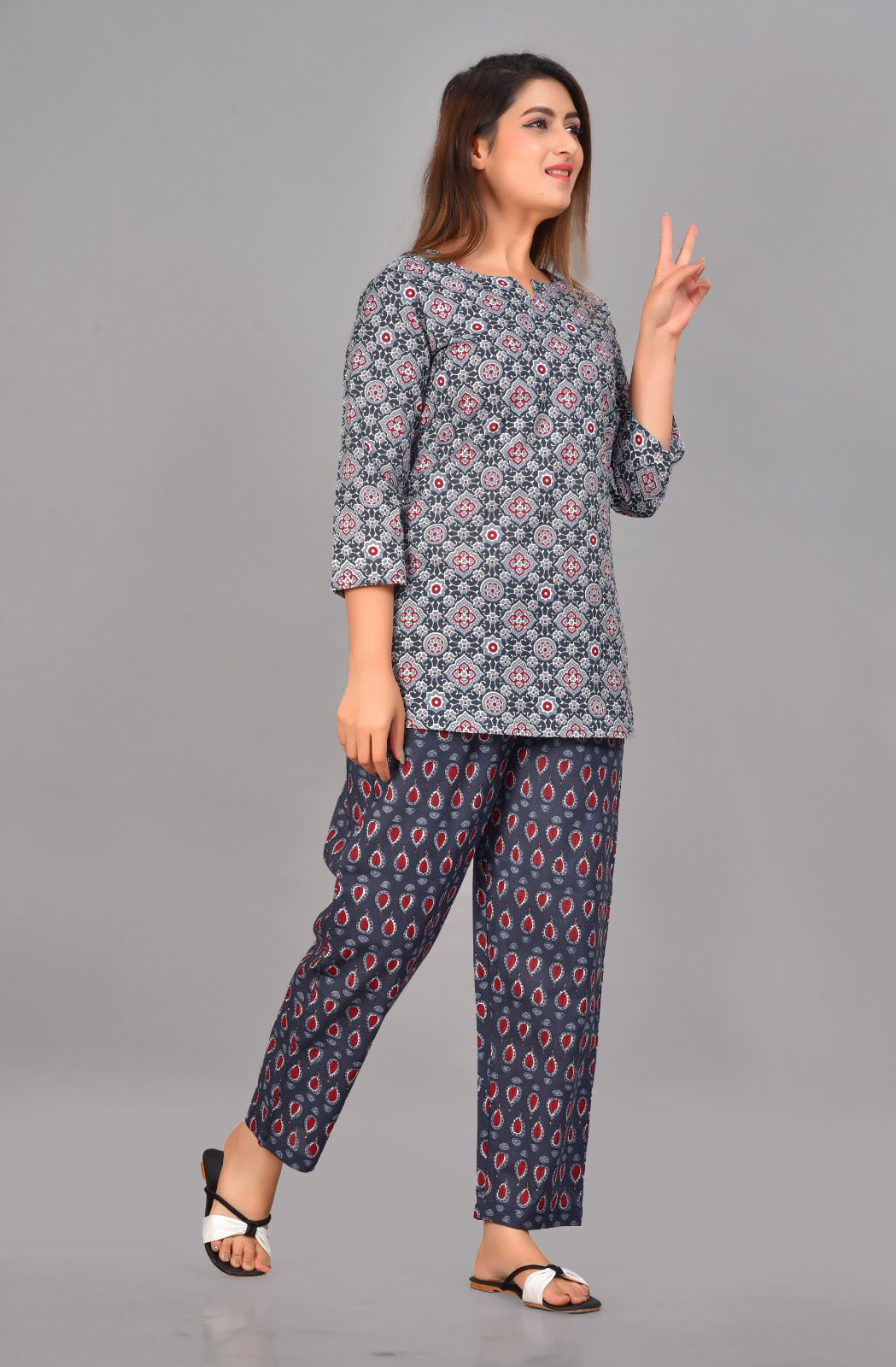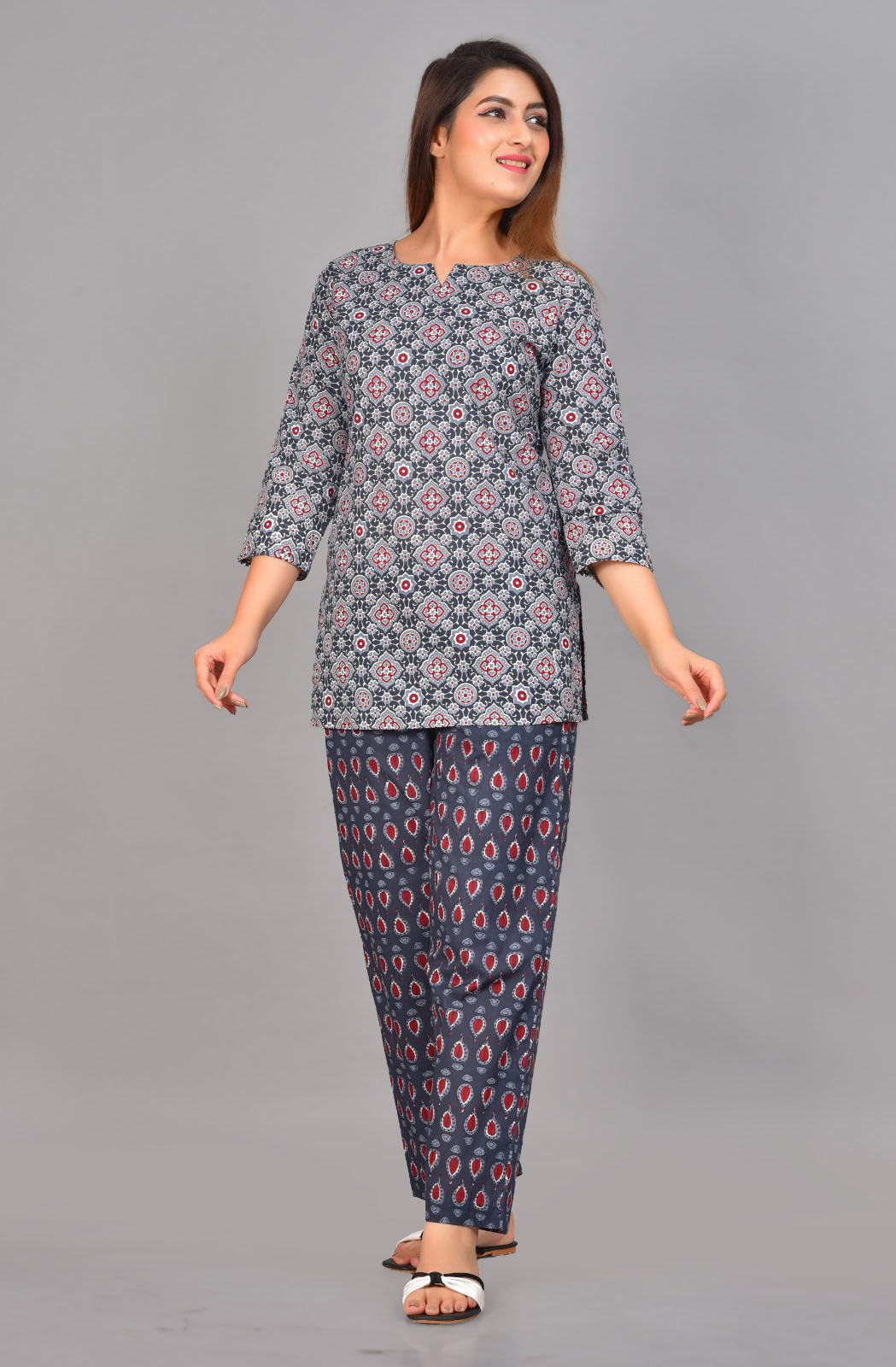 Grey Cotton Night Dress Set Kurti  Pyjama for Summer