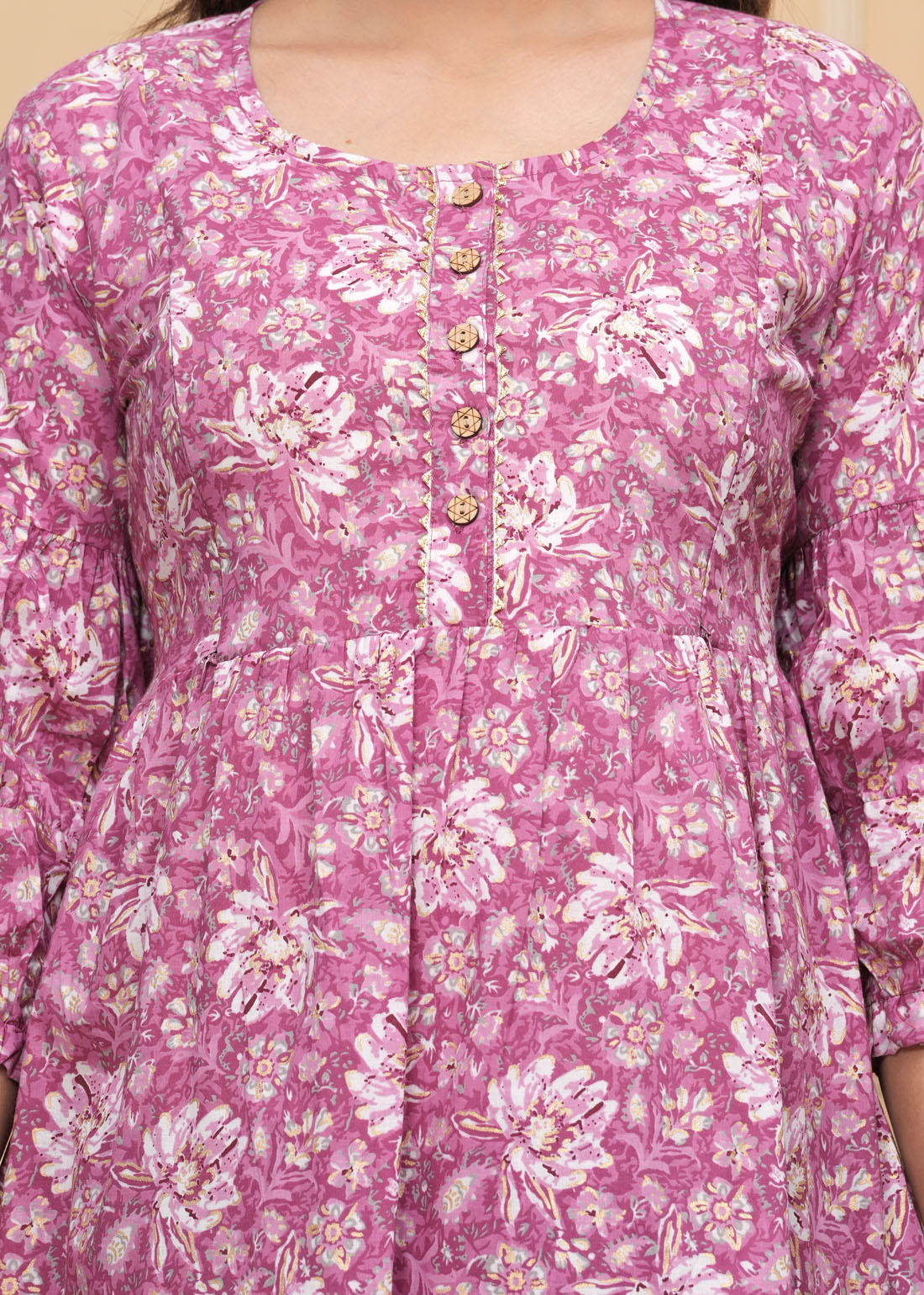 Floral Print Soft Cotton Maternity Gown for Baby Feeding Anarkali Kurti with Hidden Zip