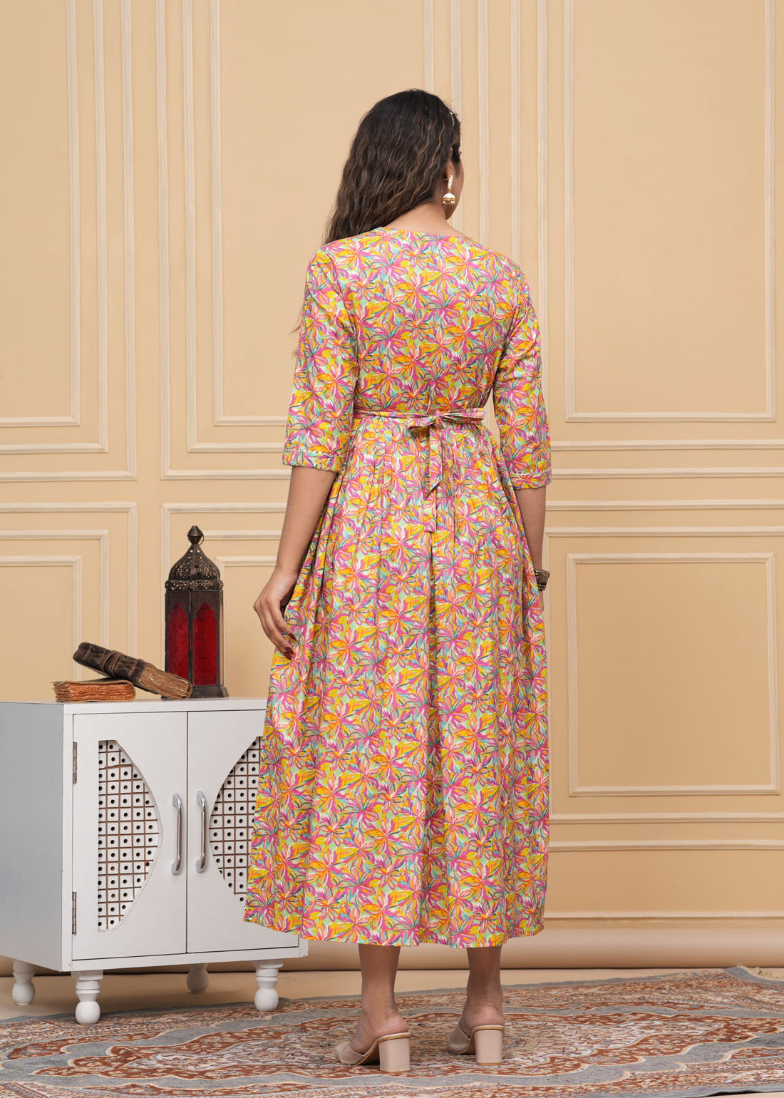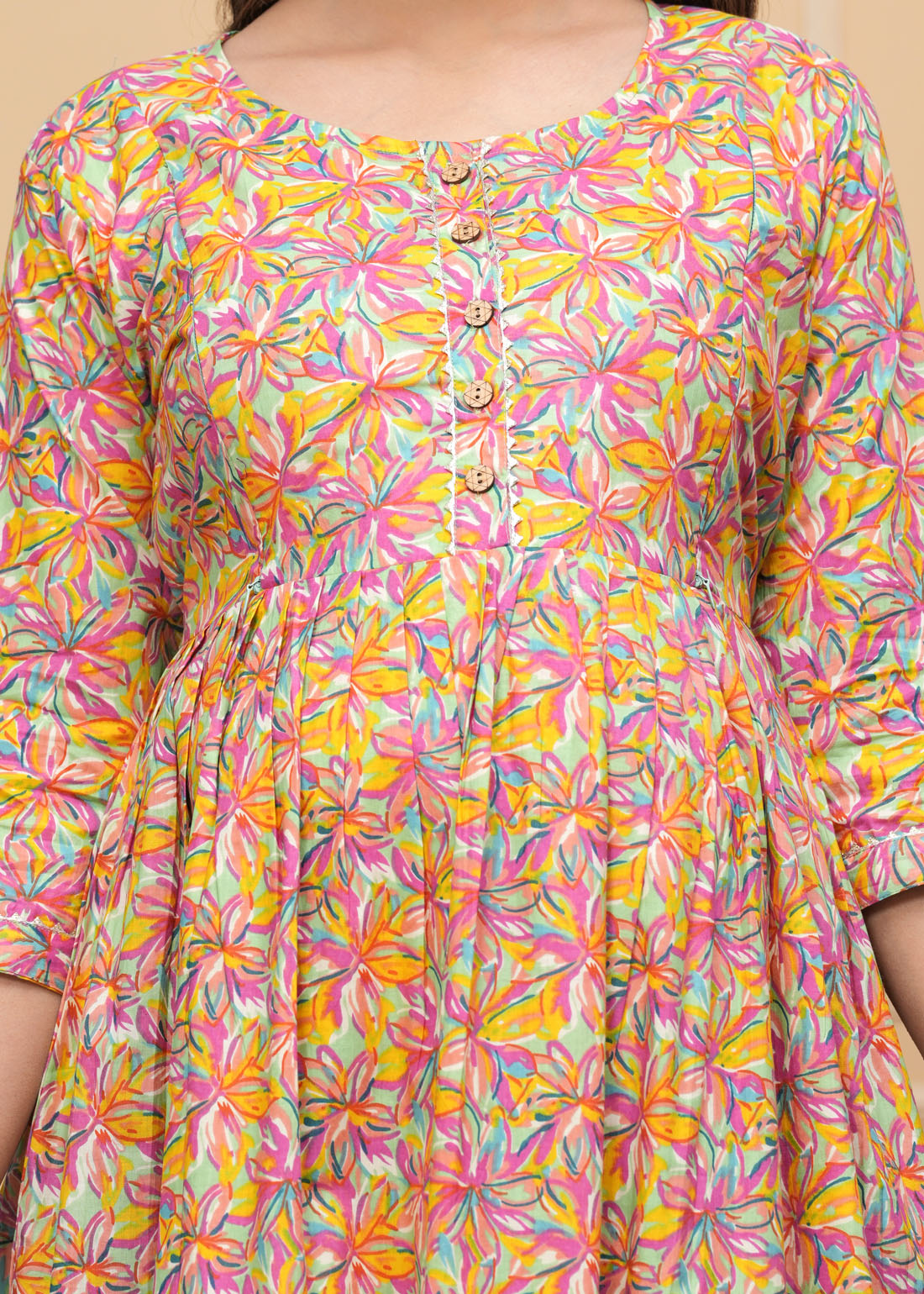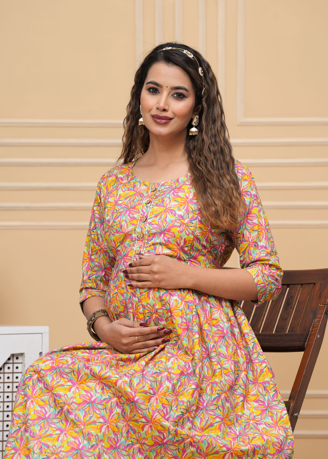 Multicolor Print Soft Cotton Maternity Gown for Baby Feeding Anarkali Kurti with Hidden Feeding Zip