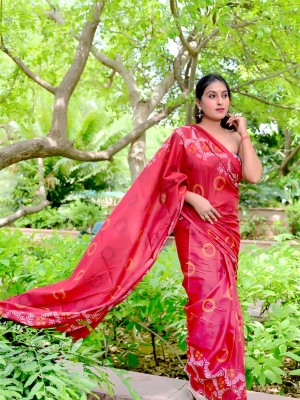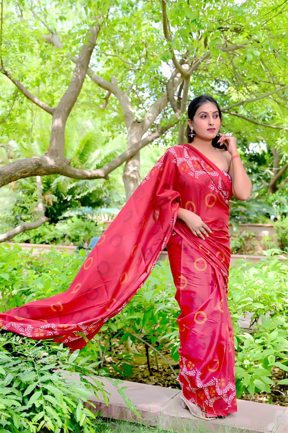 Red Indian Floral Block Print Mulmul Cotton Saree