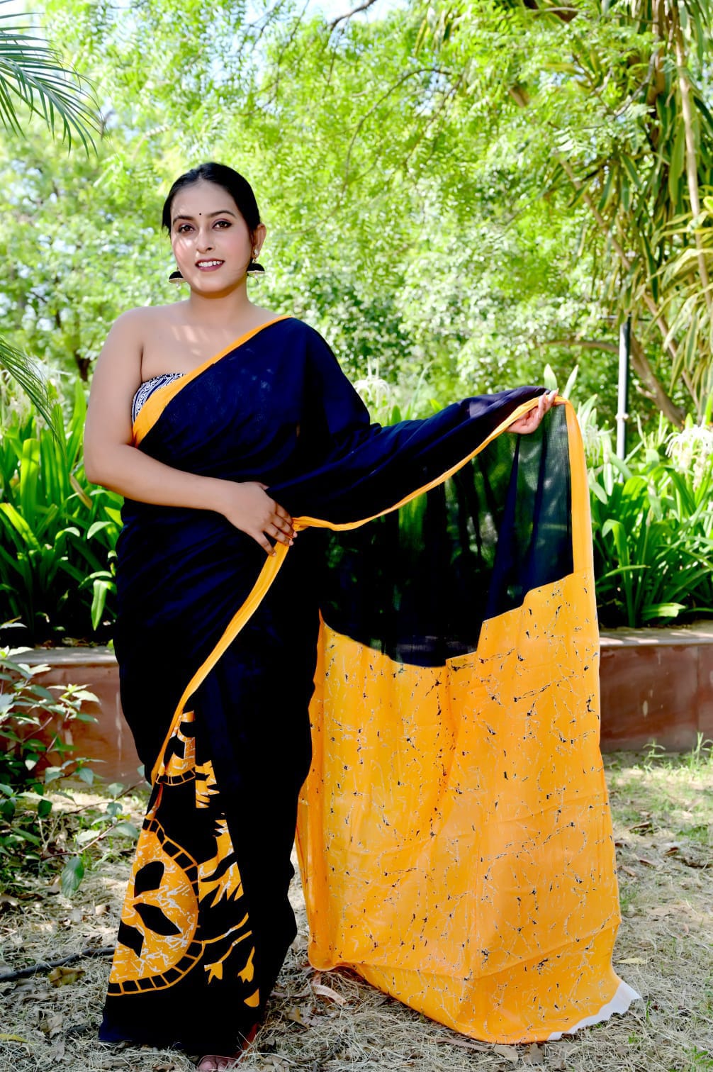 Add New Cotton Mulmul Saree Collection to you wardrobe with New Indian Block Print Floral Saree with Blouse Piece.