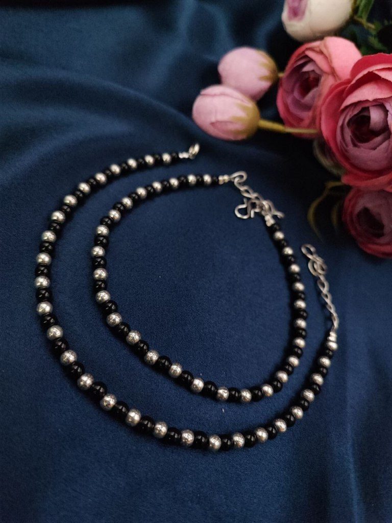 Black 1x Pair Silver Plated Round Beads Adjustable Anklet Women Indian Payal Foot Chain