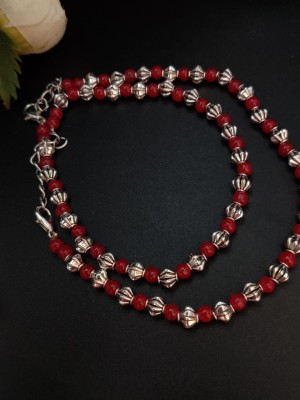 Red 1x Pair Silver Plated Round Beads Adjustable Anklet Women Indian Payal Foot Chain