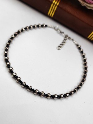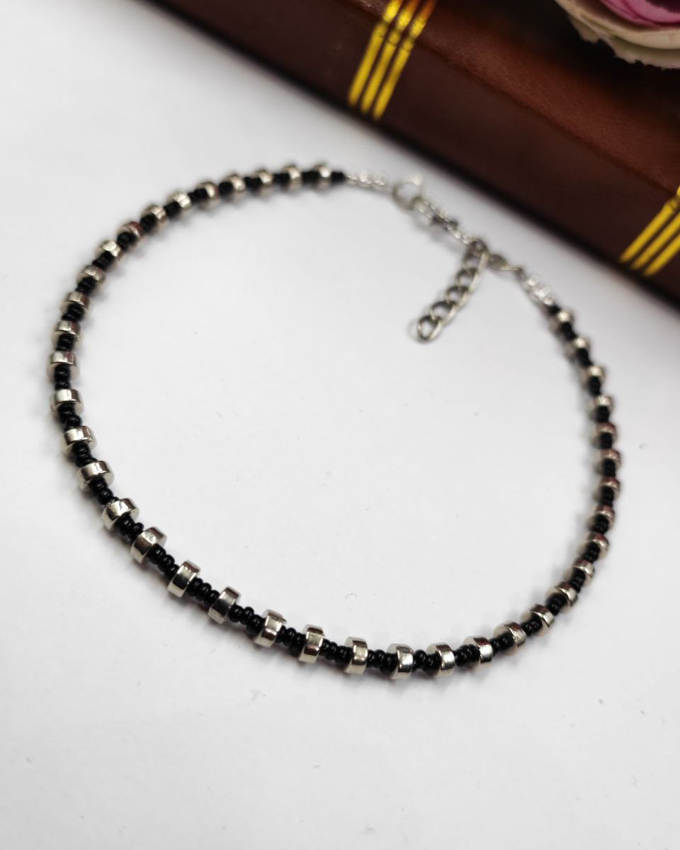 Silver Plated Round Black Cheed Beads Adjustable Anklet Women Indian Payal Foot Chain