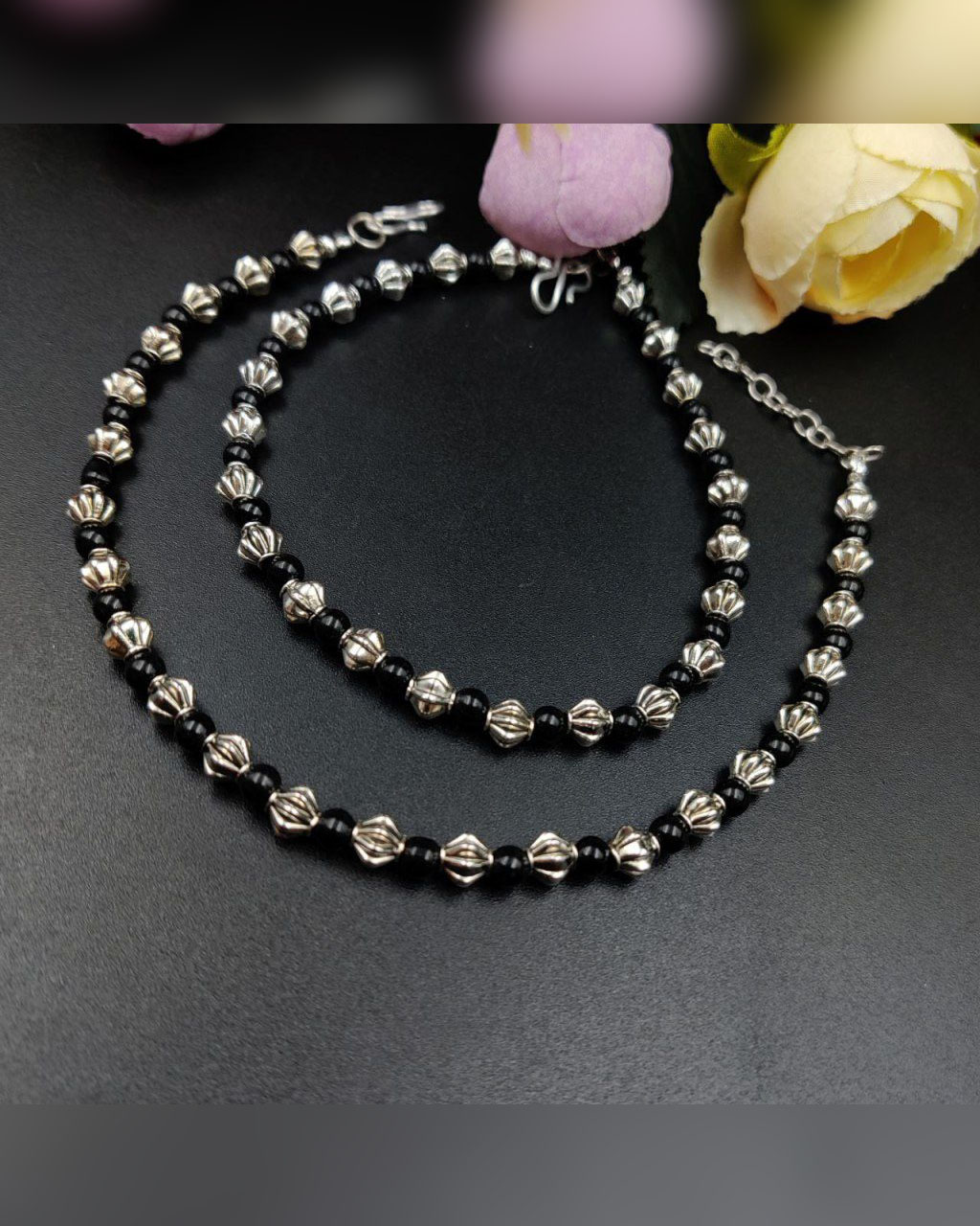 Black Silver Flower Beads Anklets Adjustable Anklet Women Indian Payal Foot Chain for Girls