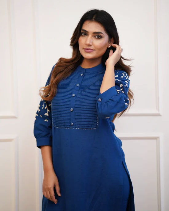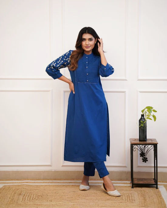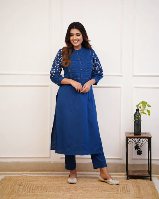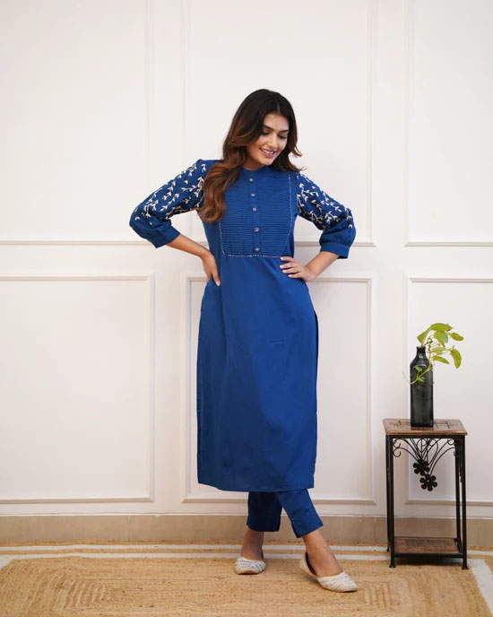 Blue Trisha Embroidered Cord Set Kurti Pant Set Indian Salwar Kameez Set