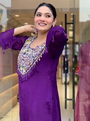 • Magenta Pink Trisha Embroidered Cord Set Kurti Pant Set Indian Salwar Kameez Set
