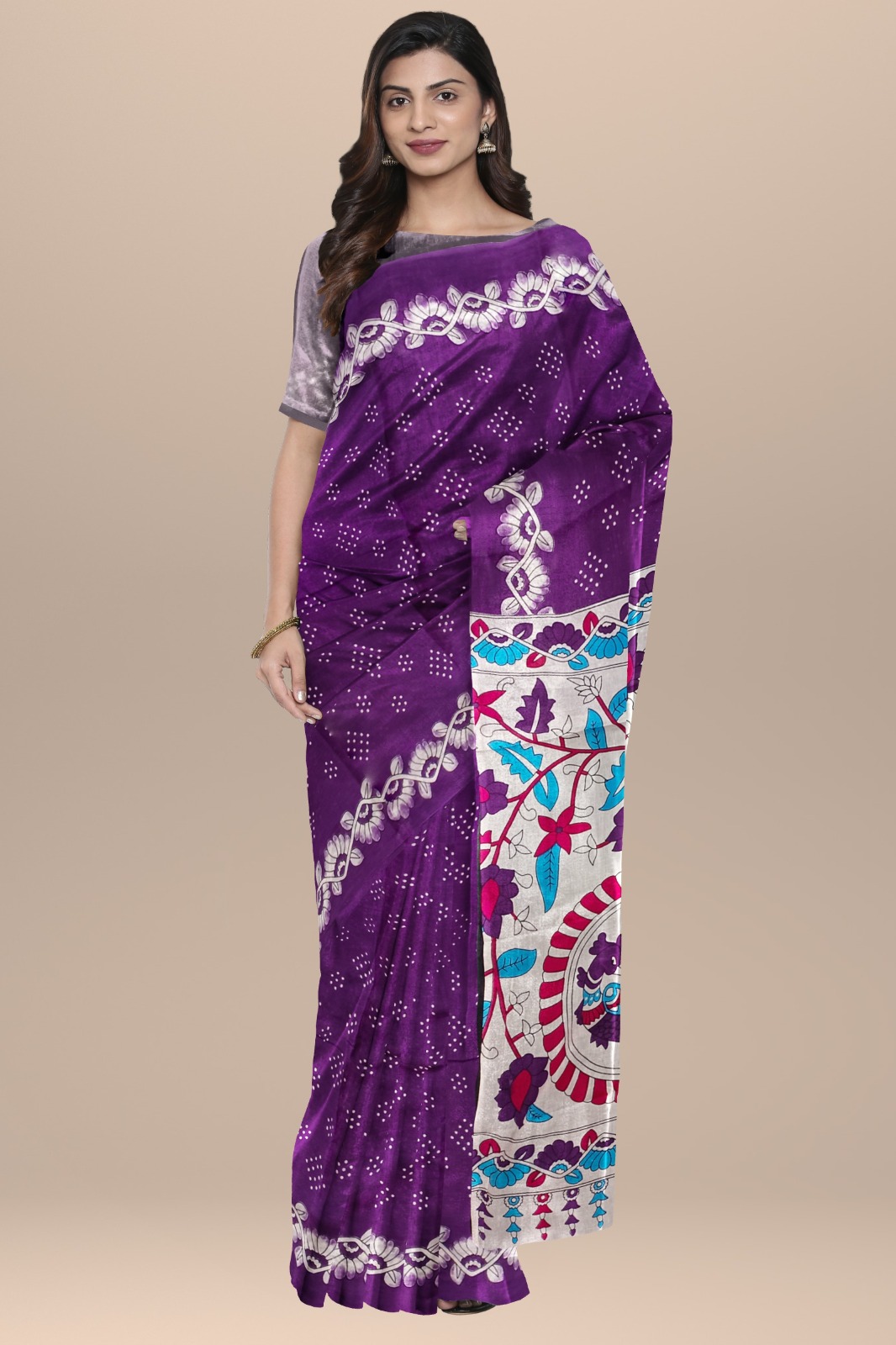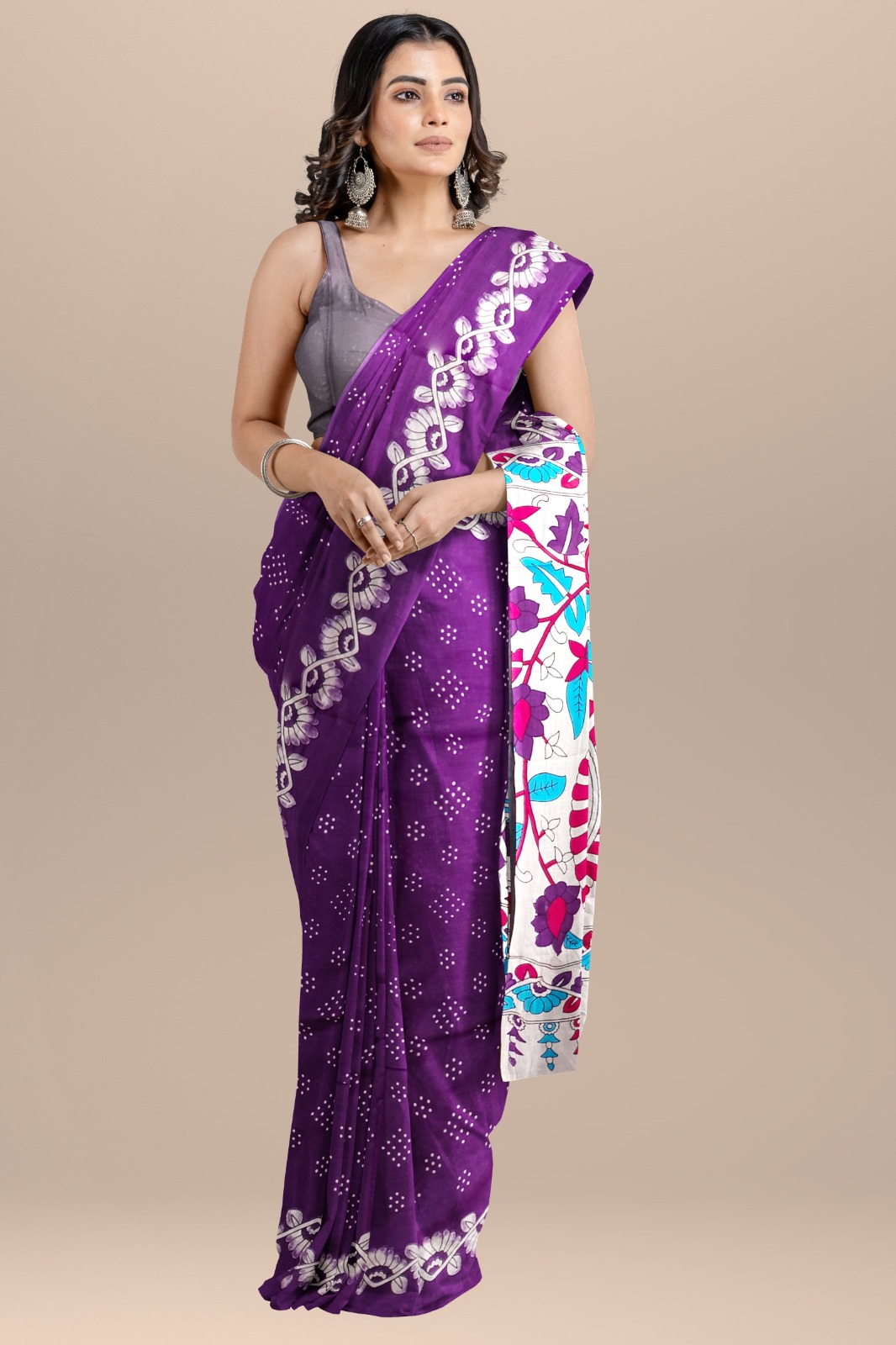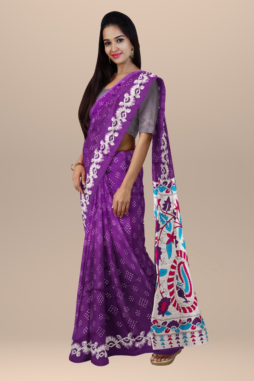 Radha Purple Printed Mulmul Cotton Saree Hand Block Printed with Blouse Piece for Women
