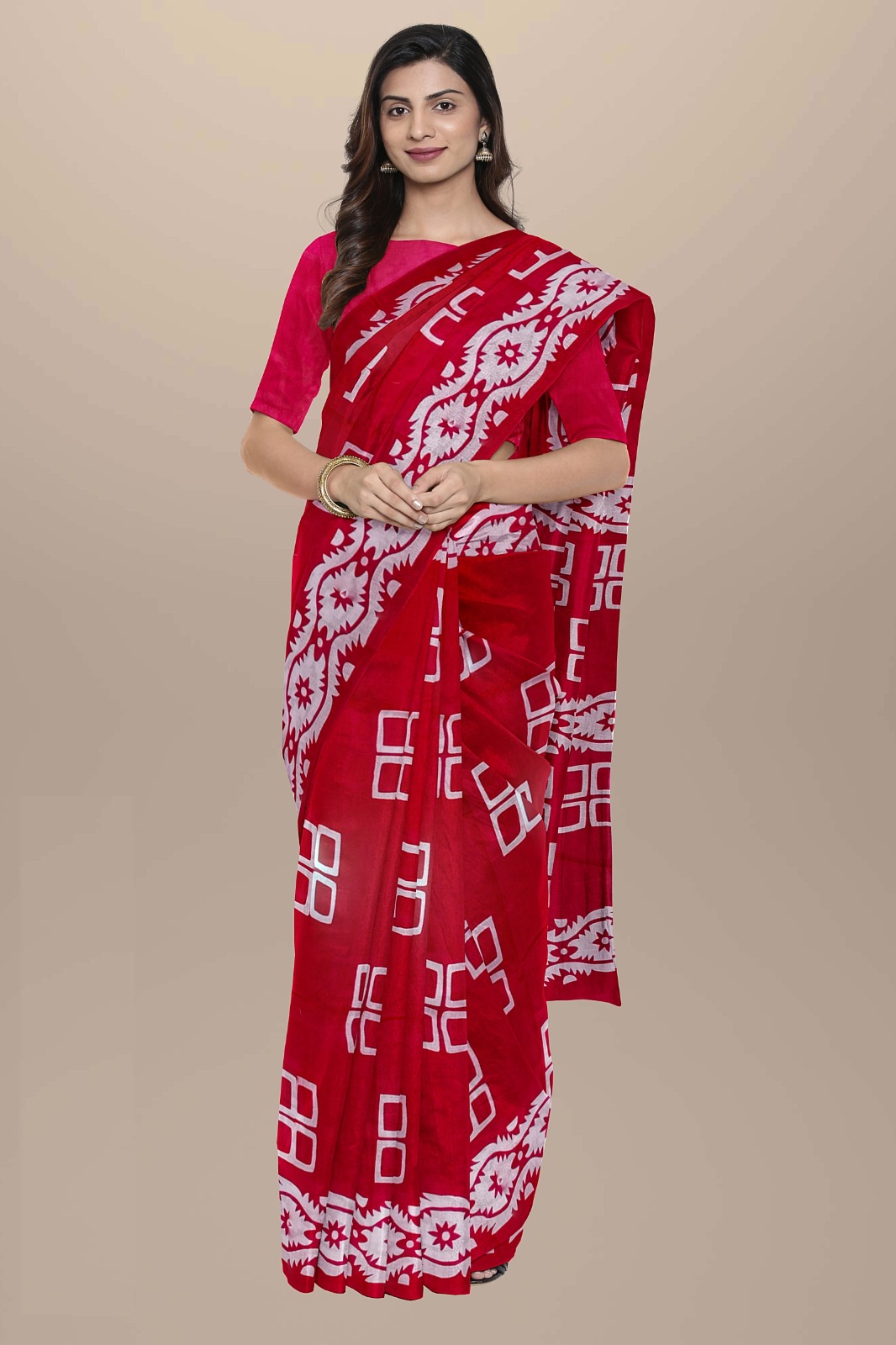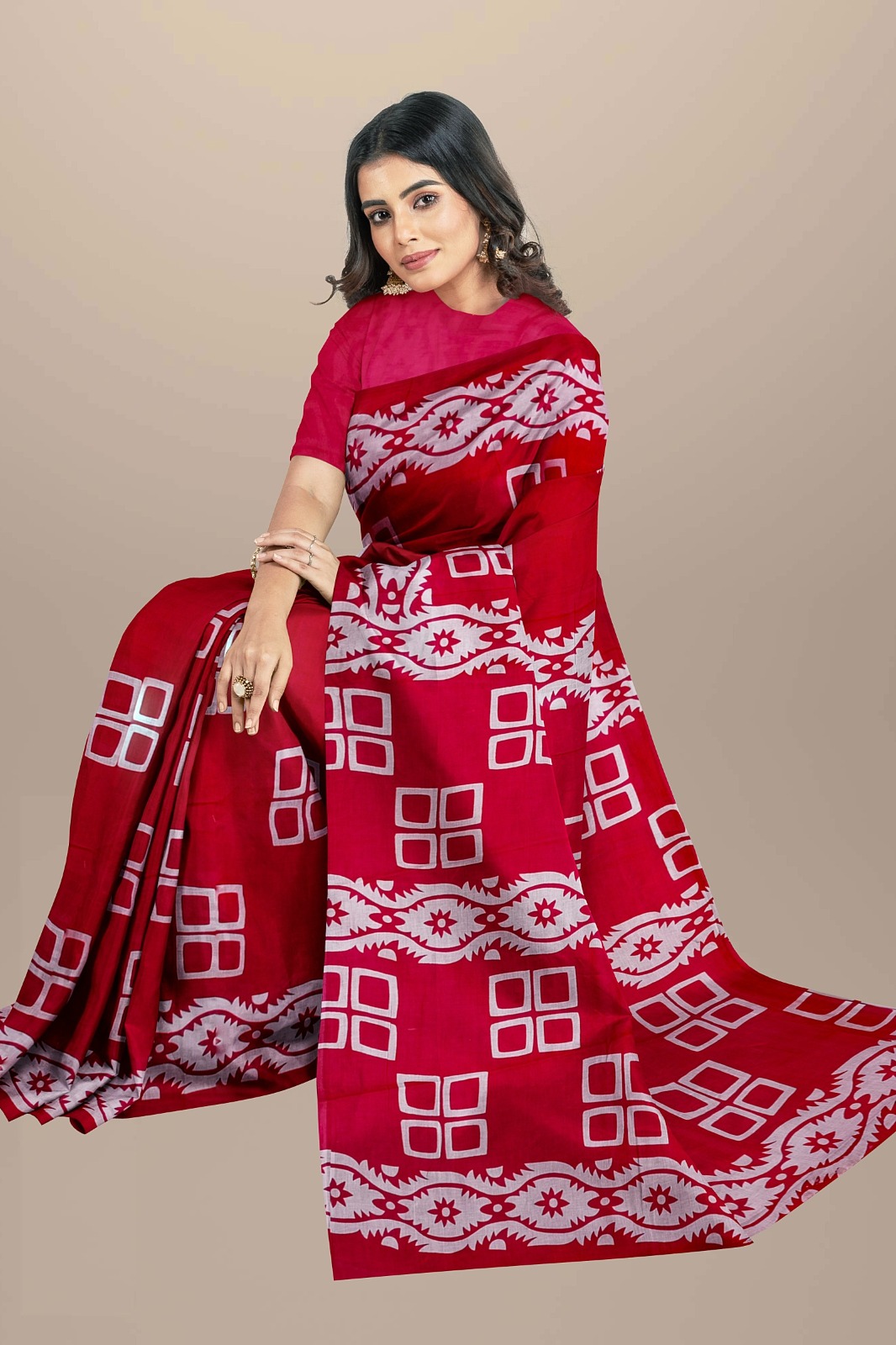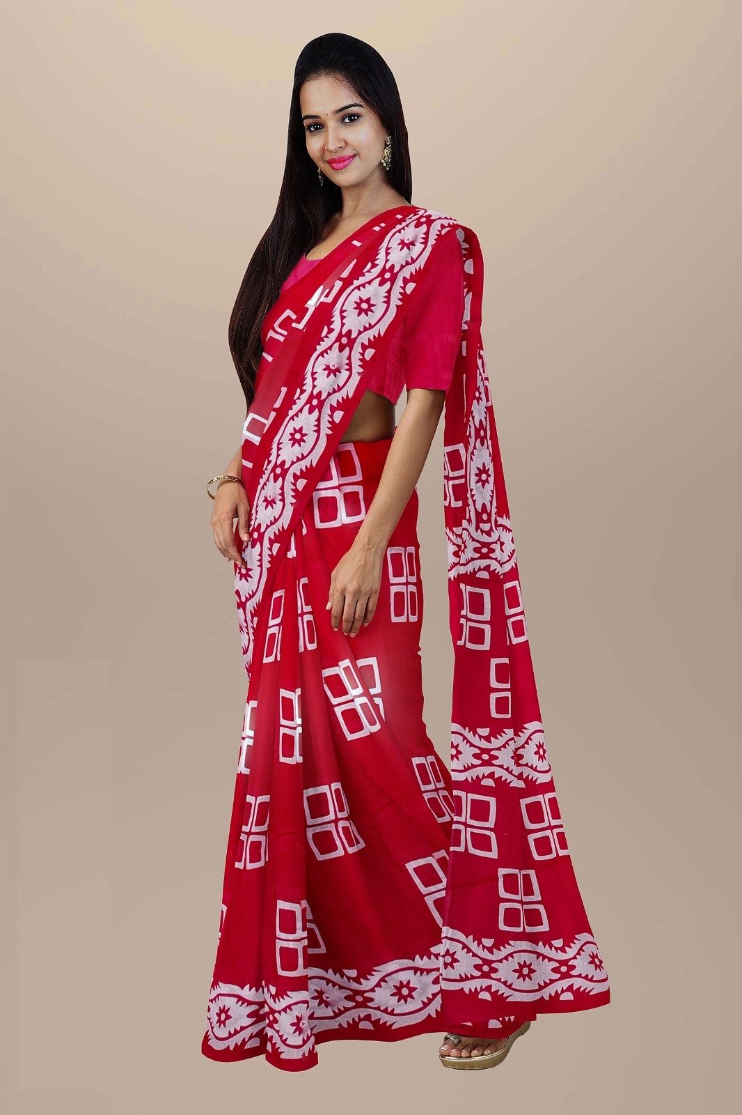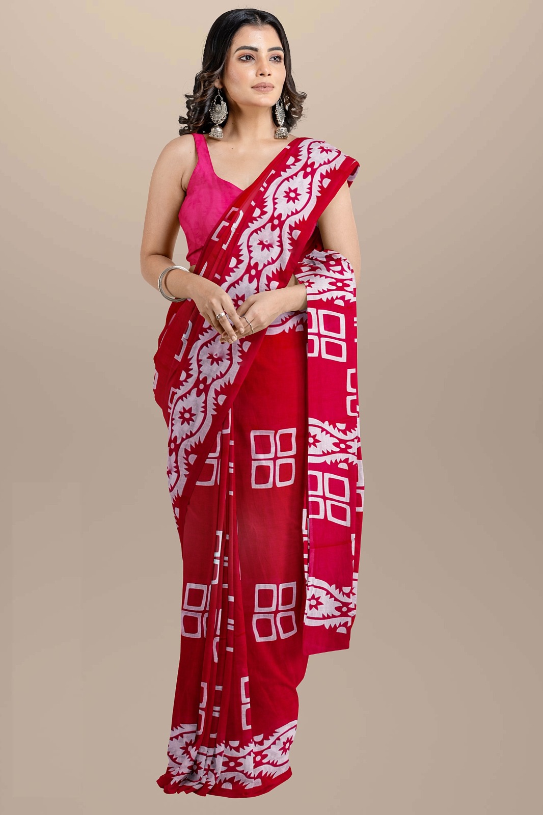 Rashmi Red Mulmul Cotton Saree Hand Block Printed with Blouse Piece for Women