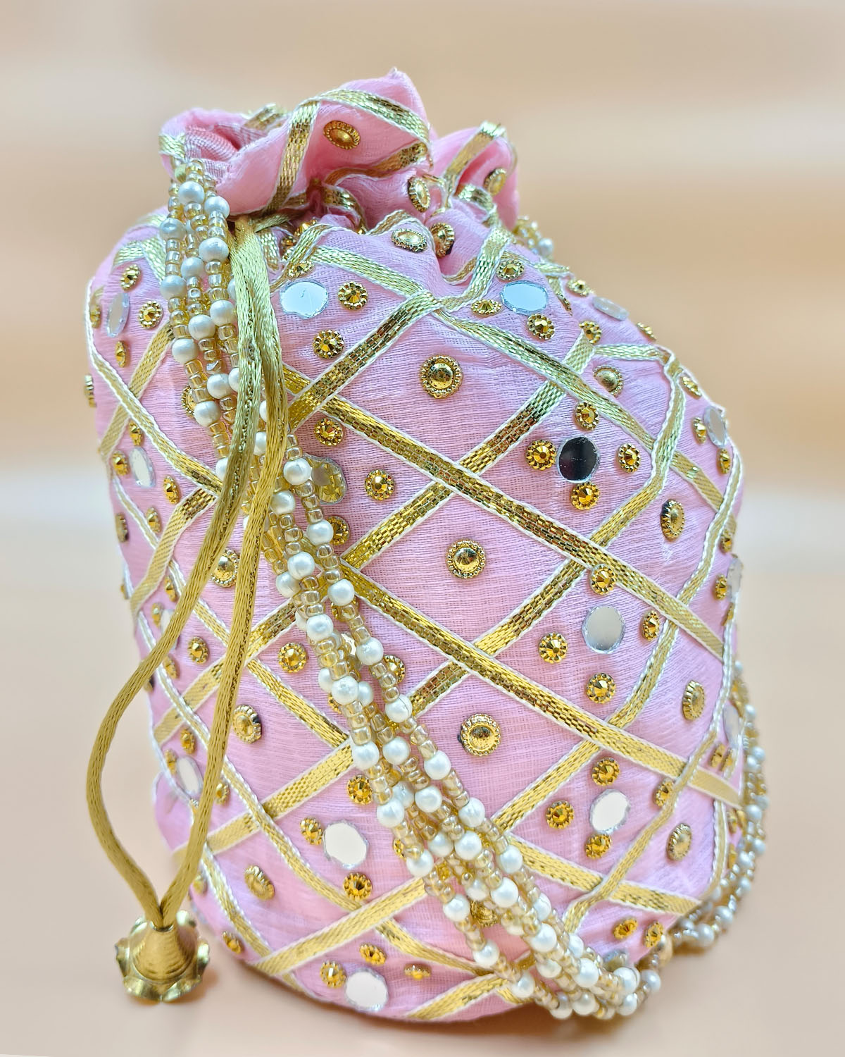 Occasion : Use on wedding, party or other family functions, dandiya, traditional functions also you can give return gifts in this potli bag.