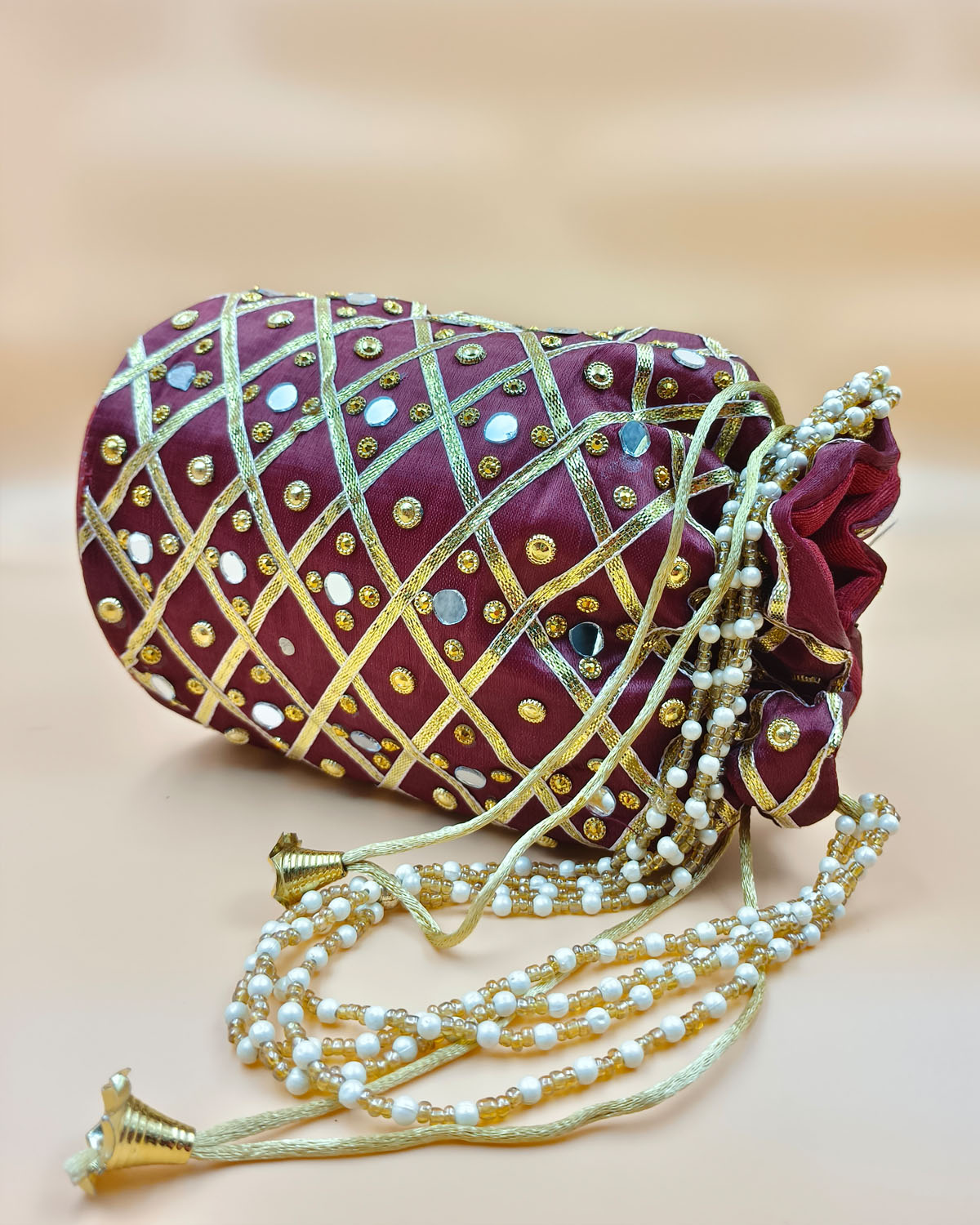 Occasion : Use on wedding, party or other family functions, dandiya, traditional functions also you can give return gifts in this potli bag.