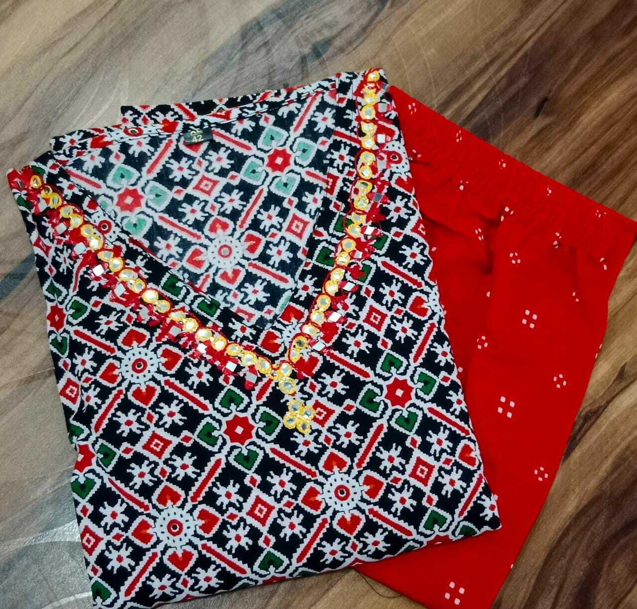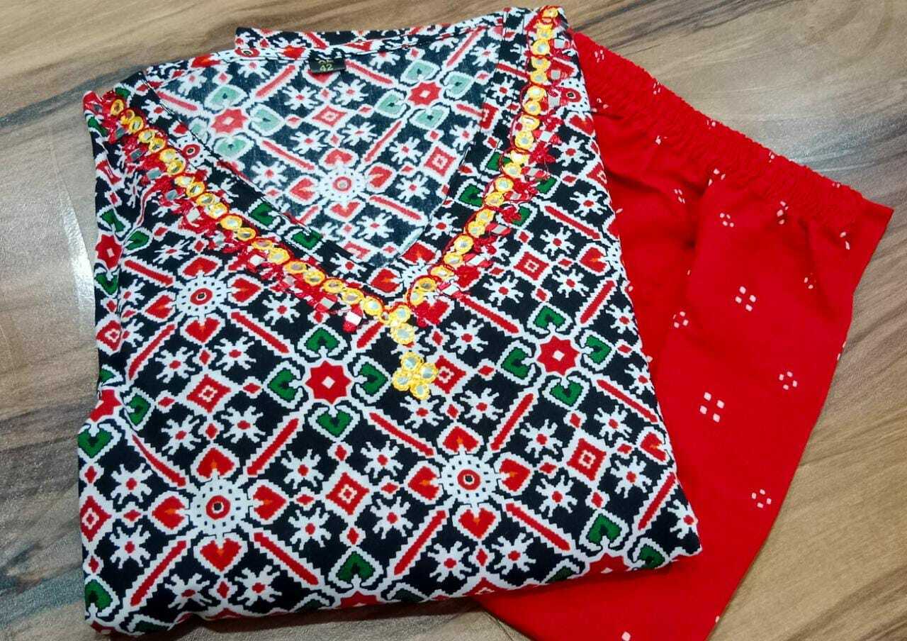 Small - Plus Size Black Red Cotton Kaftan Pant Set Printed Night Gown Maxi