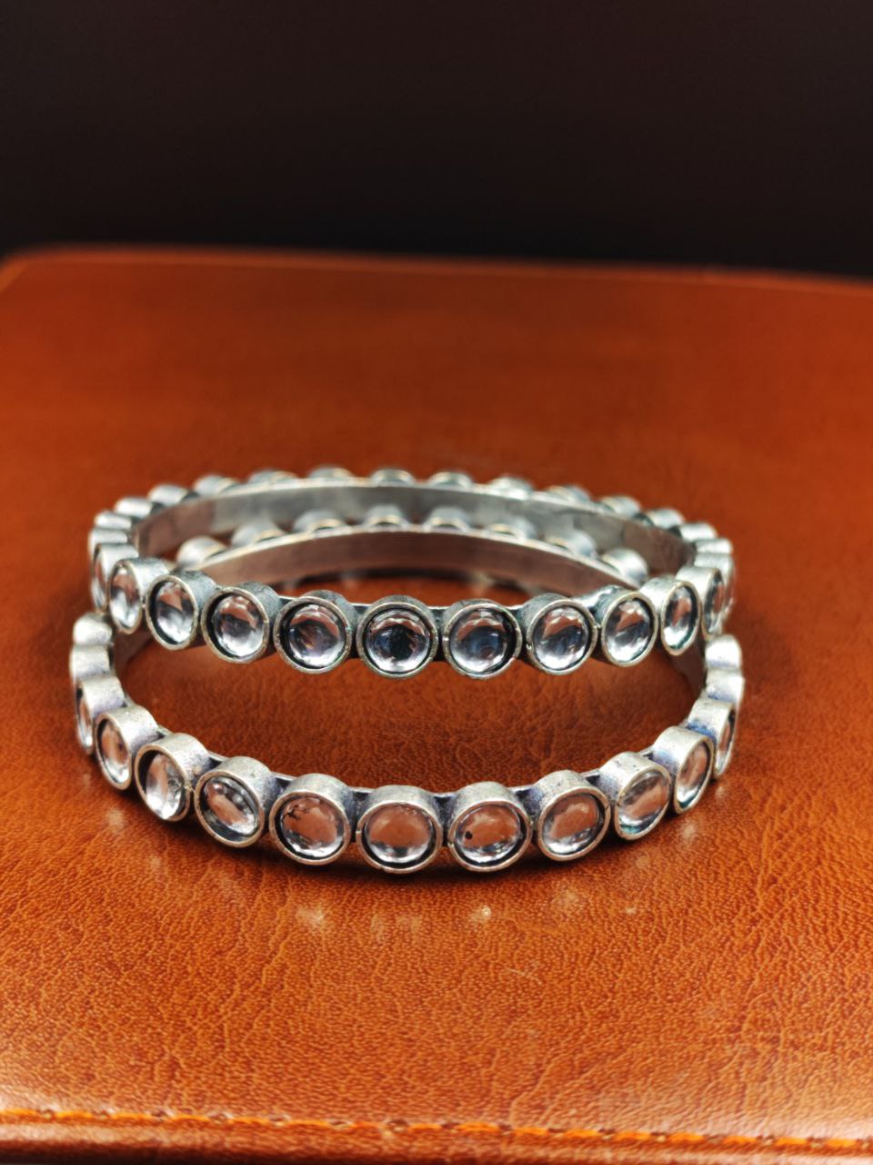 White Traditional Indian Bangle Pair Bracelet Oxidized Premium Quality Silver Replica Jewelry