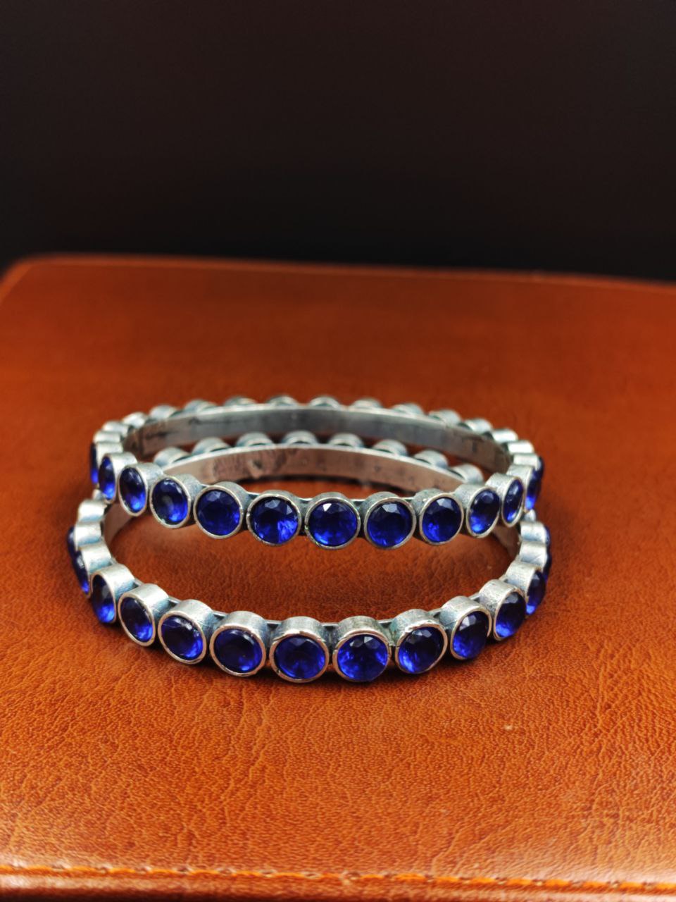 Blue Traditional Indian Bangle Pair Bracelet Oxidized Premium Quality Silver Replica Jewelry