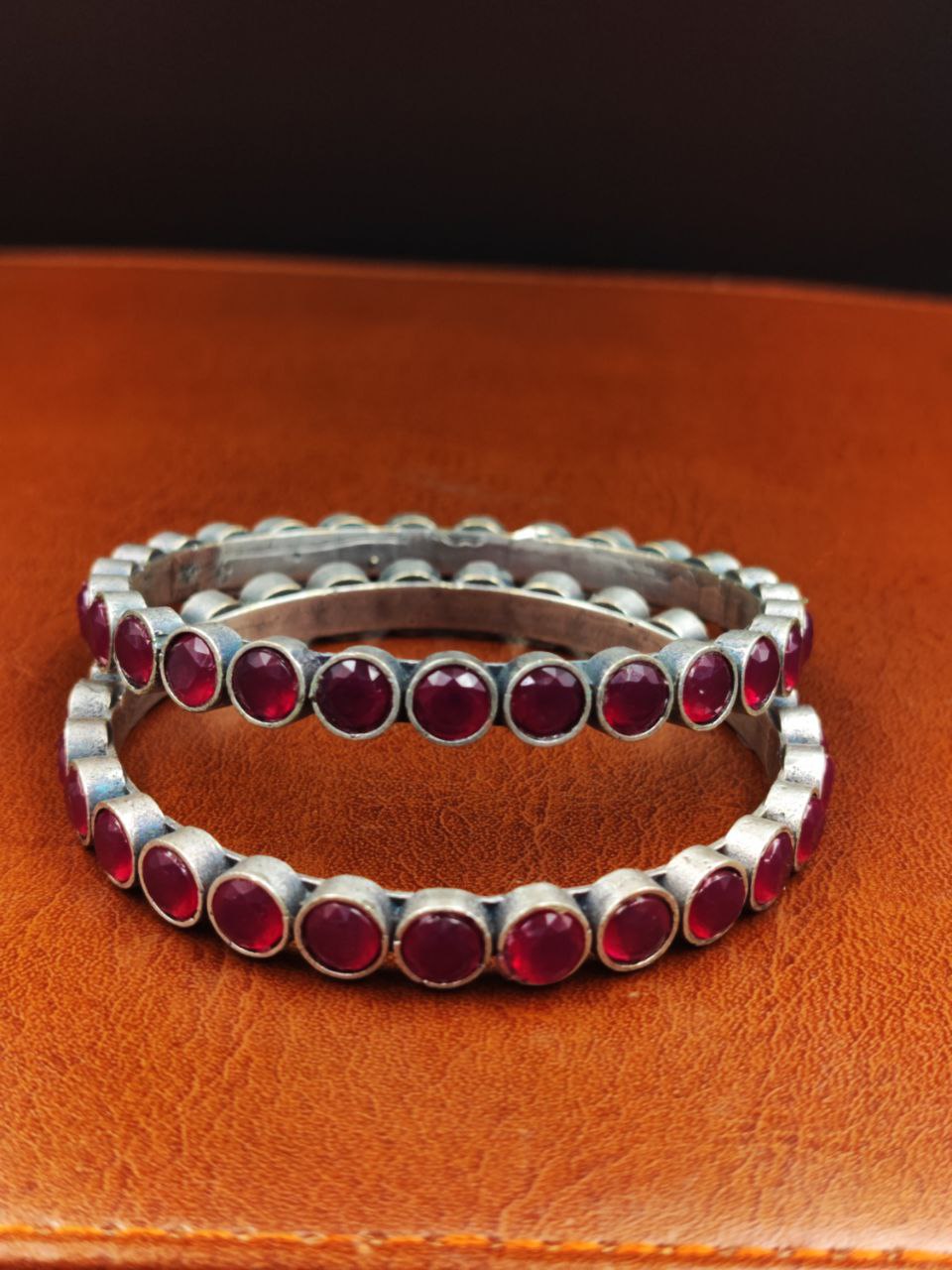 Pink Traditional Indian Bangle Pair Bracelet Oxidized Premium Quality Silver Replica Jewelry