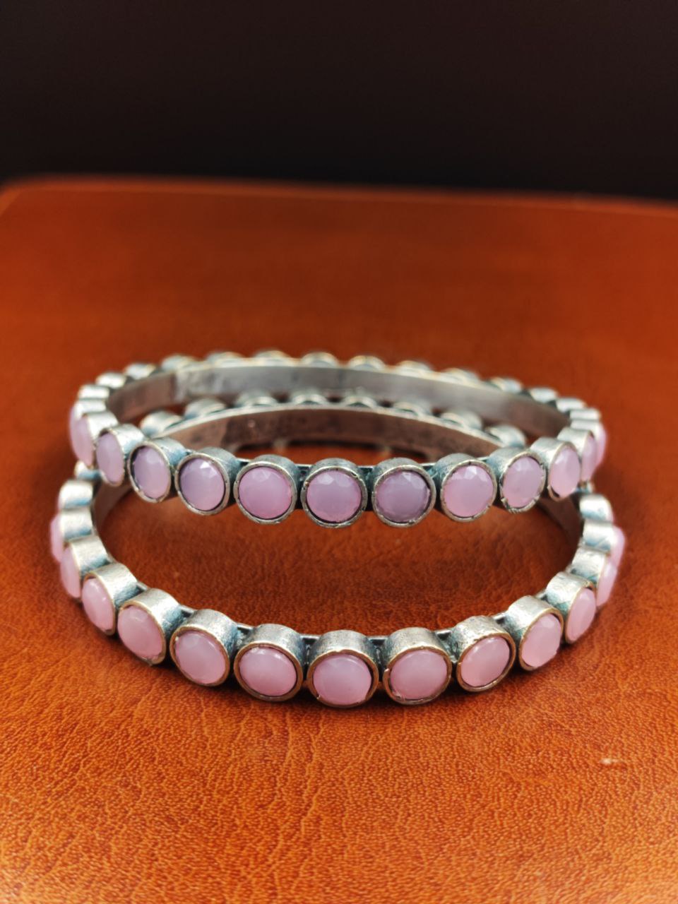Baby Pink Traditional Indian Bangle Pair Bracelet Oxidized Premium Quality Silver Replica Jewelry