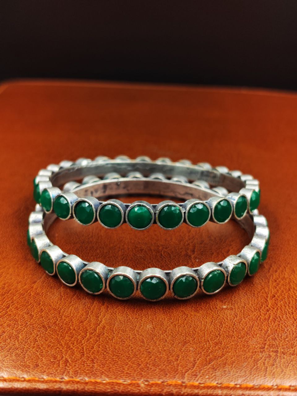 Green Traditional Indian Bangle Pair Bracelet Oxidized Premium Quality Silver Replica Jewelry
