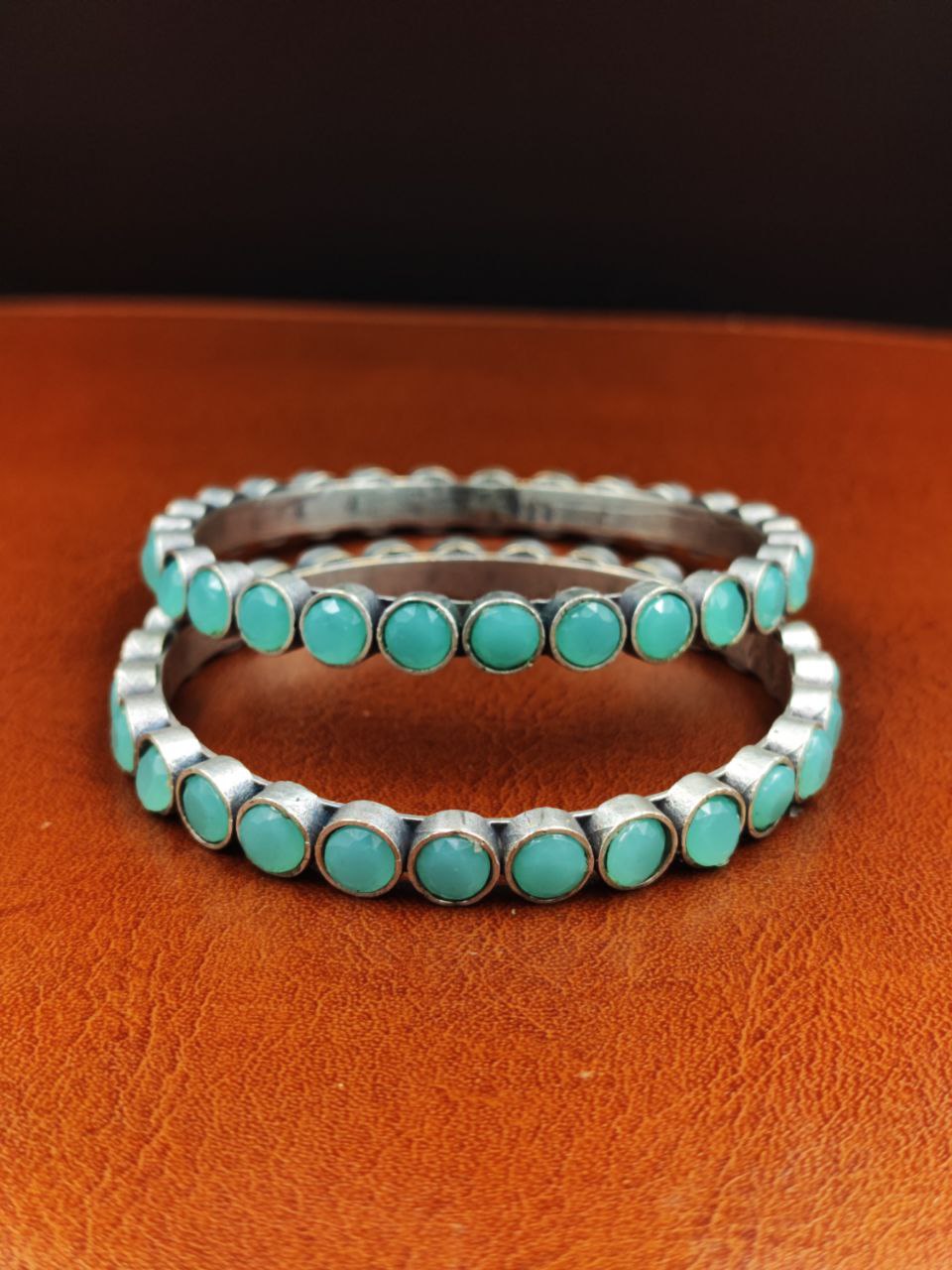 Mint Traditional Indian Bangle Pair Bracelet Oxidized Premium Quality Silver Replica Jewelry
