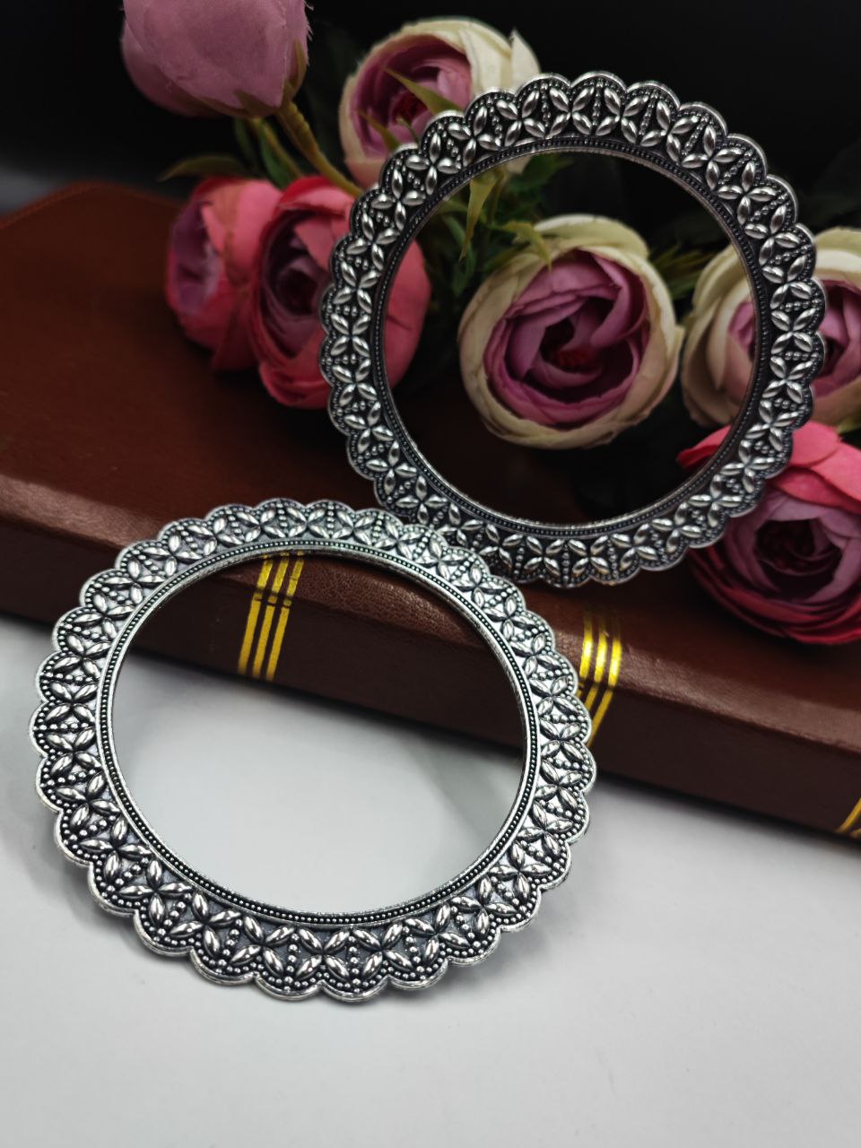 1 Pair of Oxidised Bangle Beautiful Flower Design German Silver Antique Gypsy Fashion Jewellery