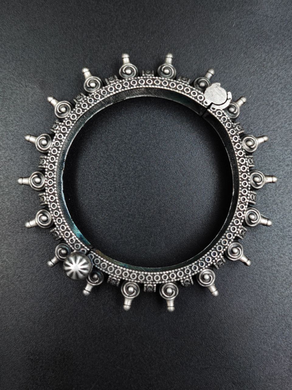 Oxidised Silver Antique Kada Openable Brass Bracelet Cuff Bangle for Ladies