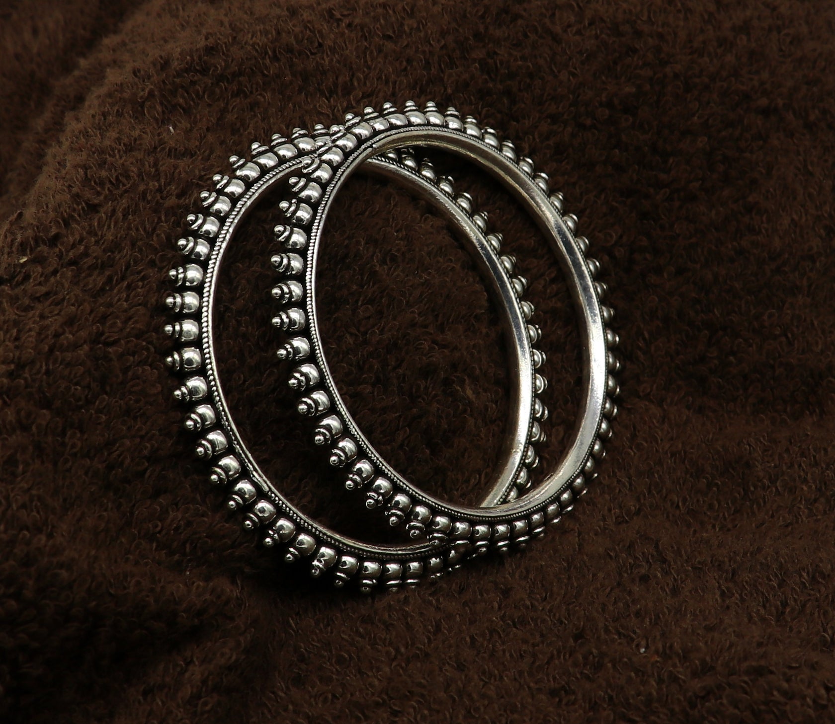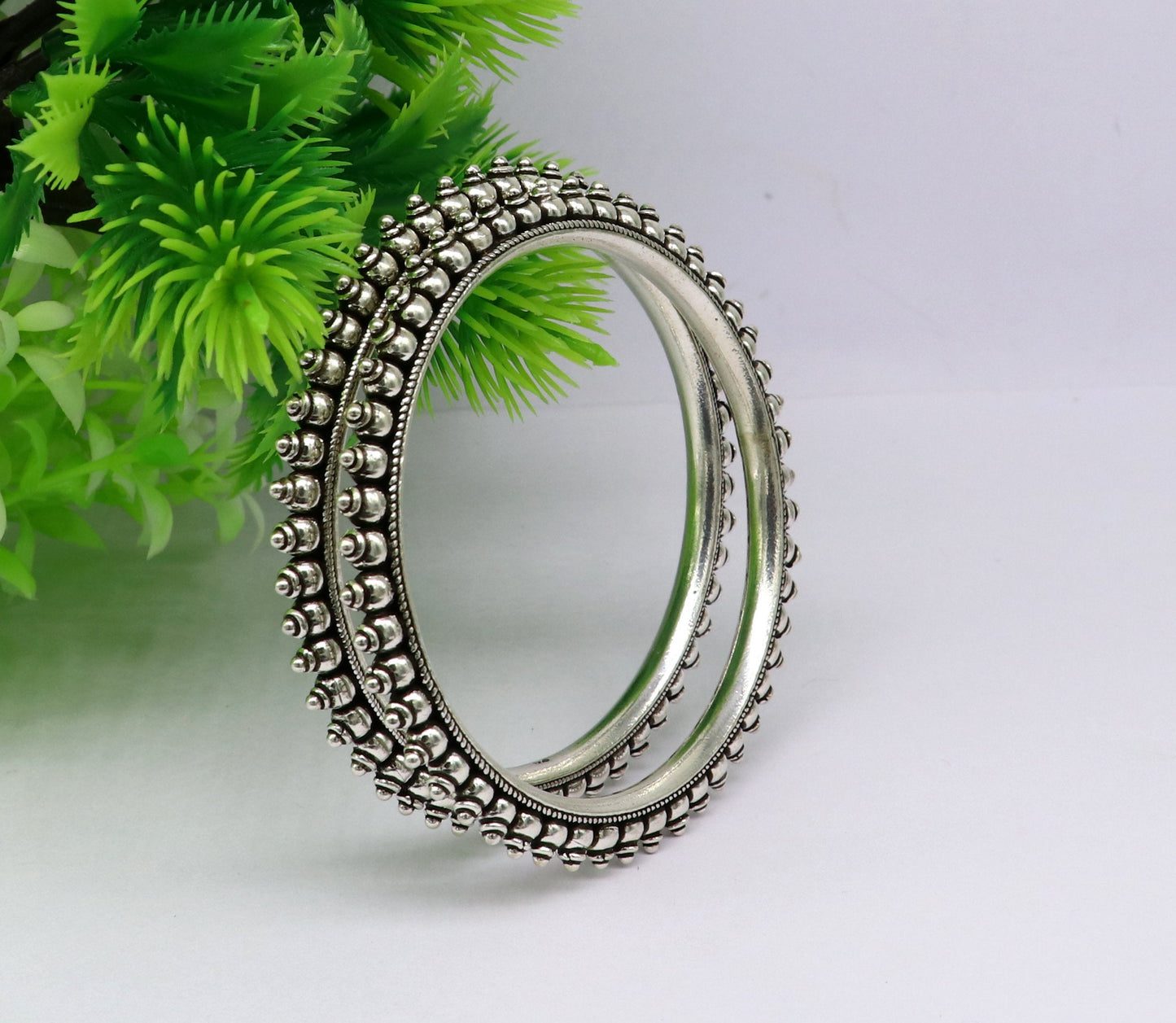 Indian Boho Silver Bangle Pair Oxidized German Silver Women Bracelet Jewelry Gift
