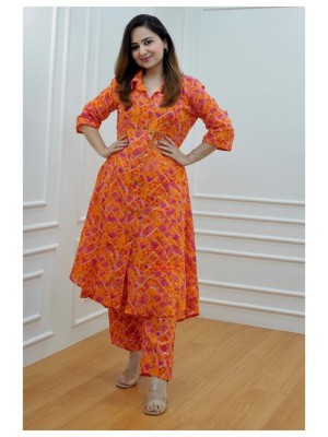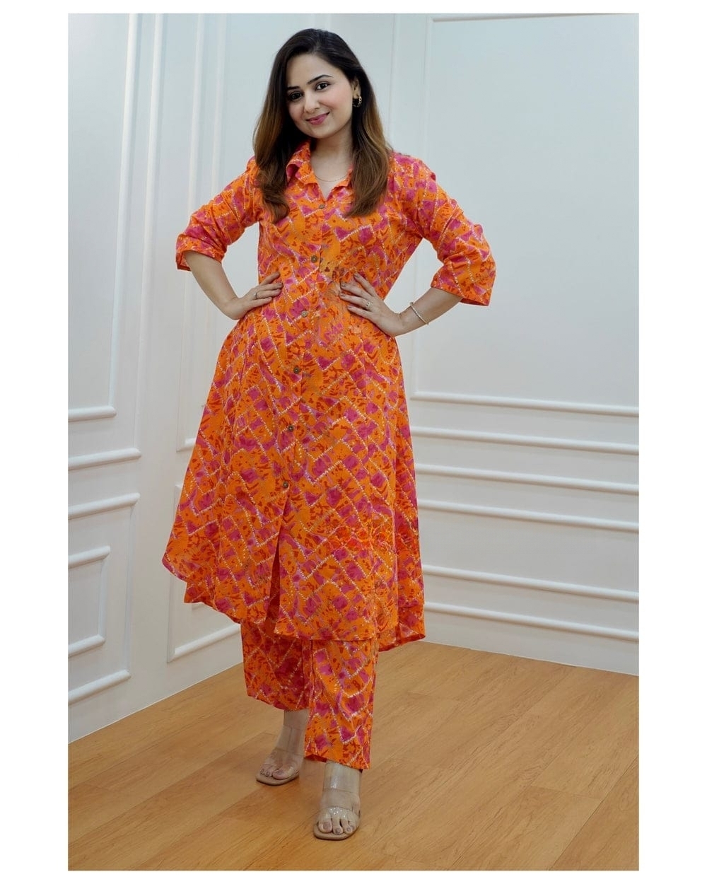 Orange Zigzag Indian Readymade Indian Salwar Kameez Kurti Pant Co Ord Set