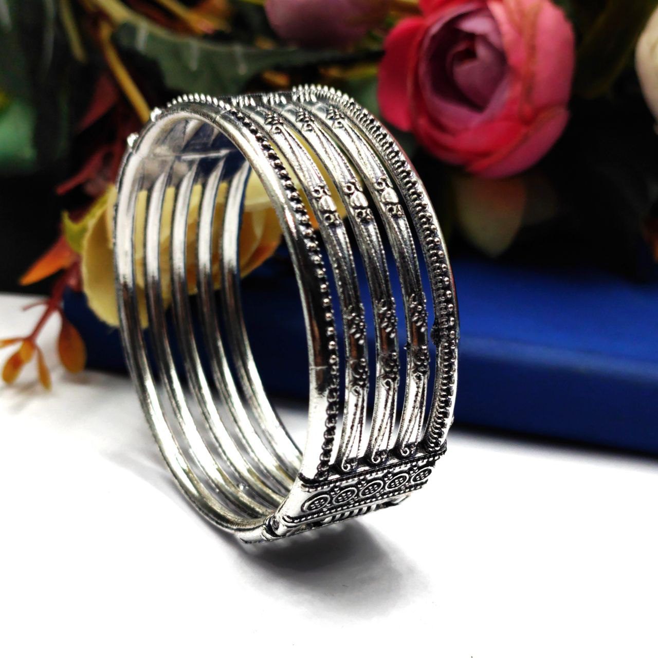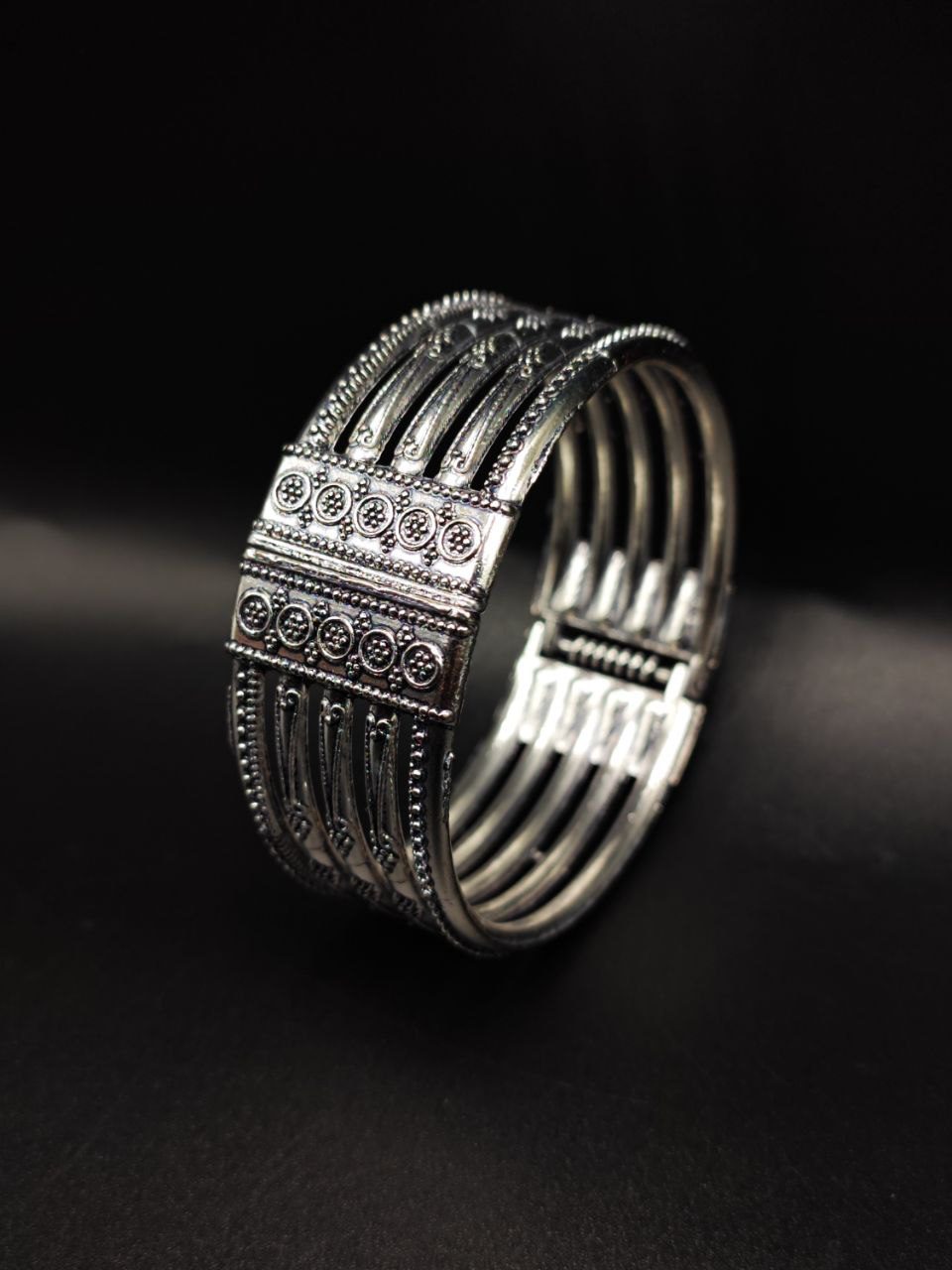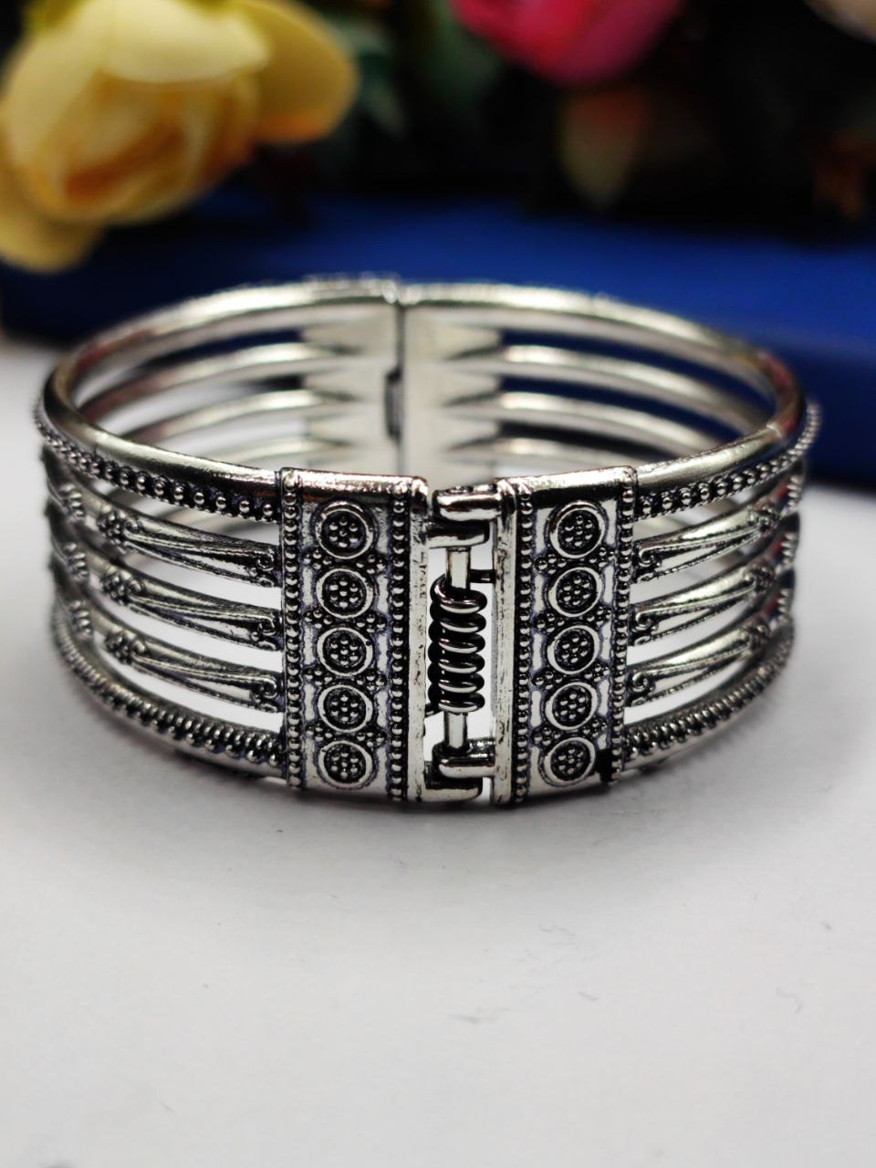 Handcuff Bracelet for Women Silver Strand Layered Oxidized Bracelet Antique Bangle Boho Style