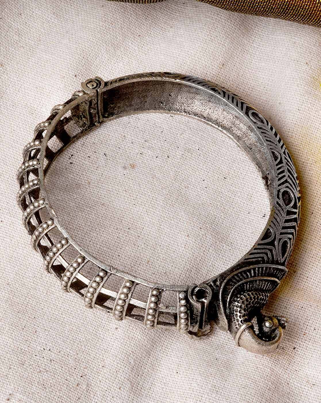 Peacock Silver Replica Vintage Banjara Oxidised Silver Kada Openable Bracelet Cuff Bangle Boho Jewellery