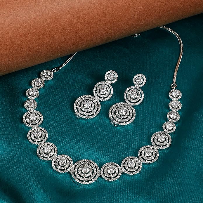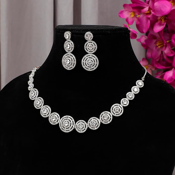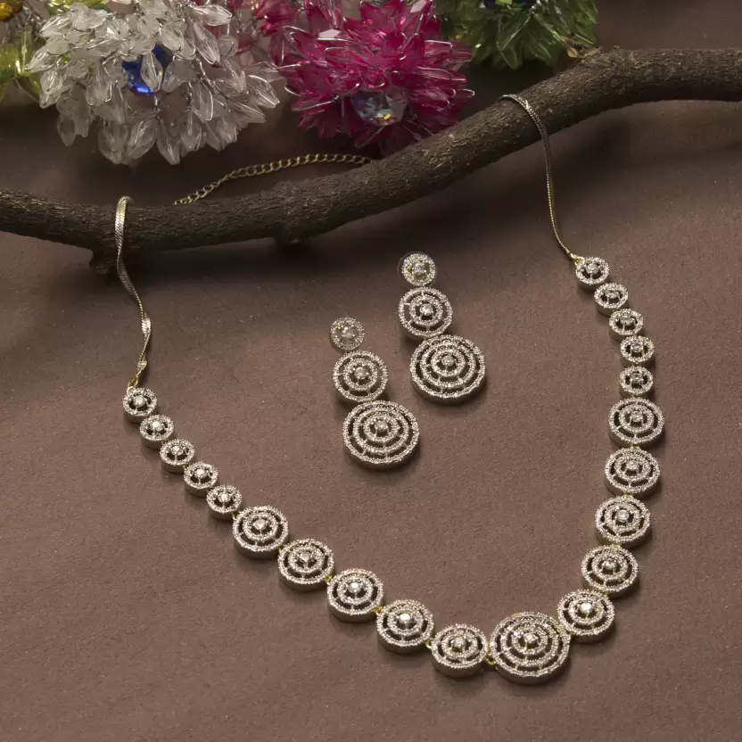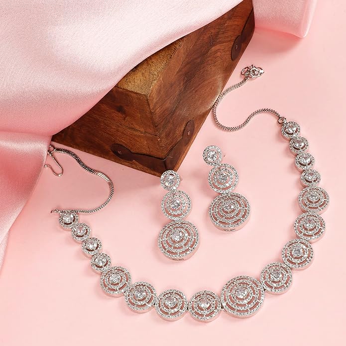 Round Circle AD Choker Necklace Earring Set Ethnic Wedding Function Jewelry for Women