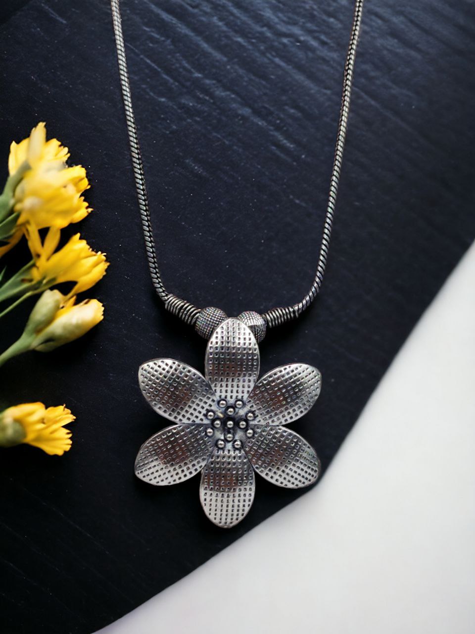Unique Flower Style Pendant Necklace German Silver Plated Oxidized Chain Pendant for Girls