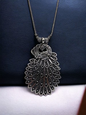 Indian Peacock Oxidized Pendant Necklace German Silver Chain Boho Jewelry