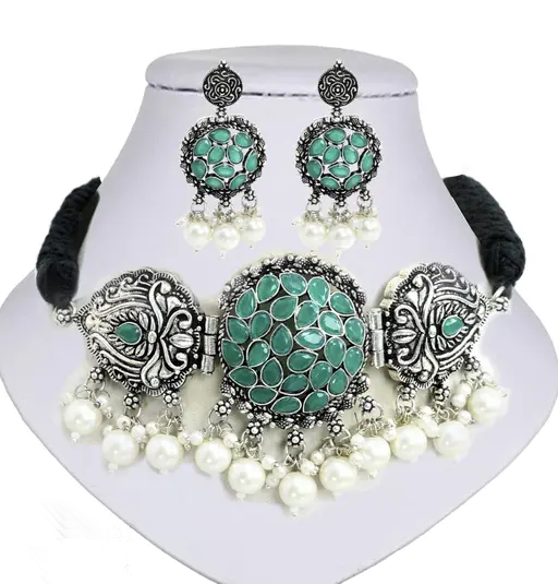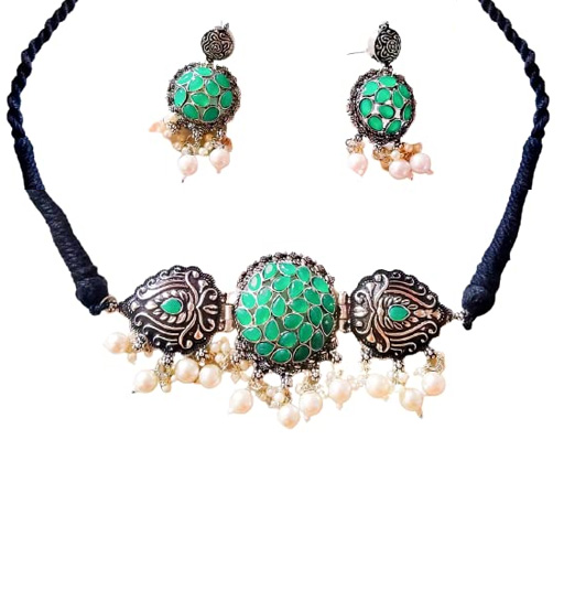 Classic look Silver Oxidised Necklace set with earrings for women to wear,