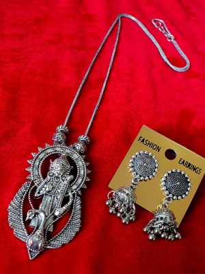 Hindu Goddess Mata Durga Pendant Necklace with Jhumka Set Silver Plated Oxidized Navratri Garba Jewellery