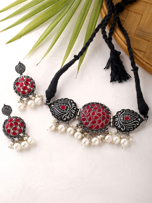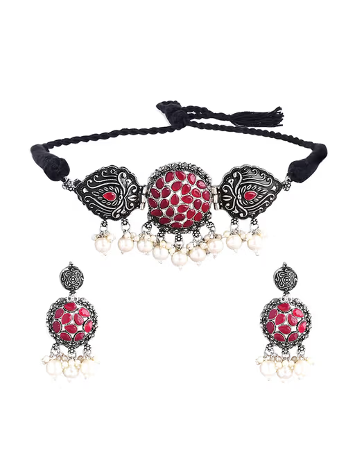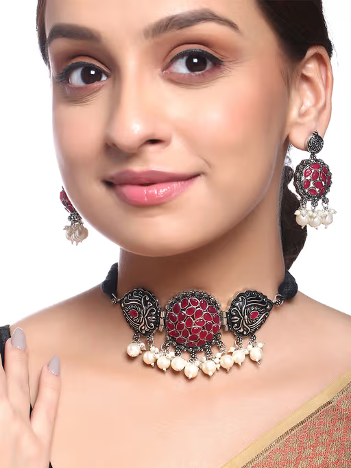 Classic look Silver Oxidised Necklace set with earrings for women to wear,