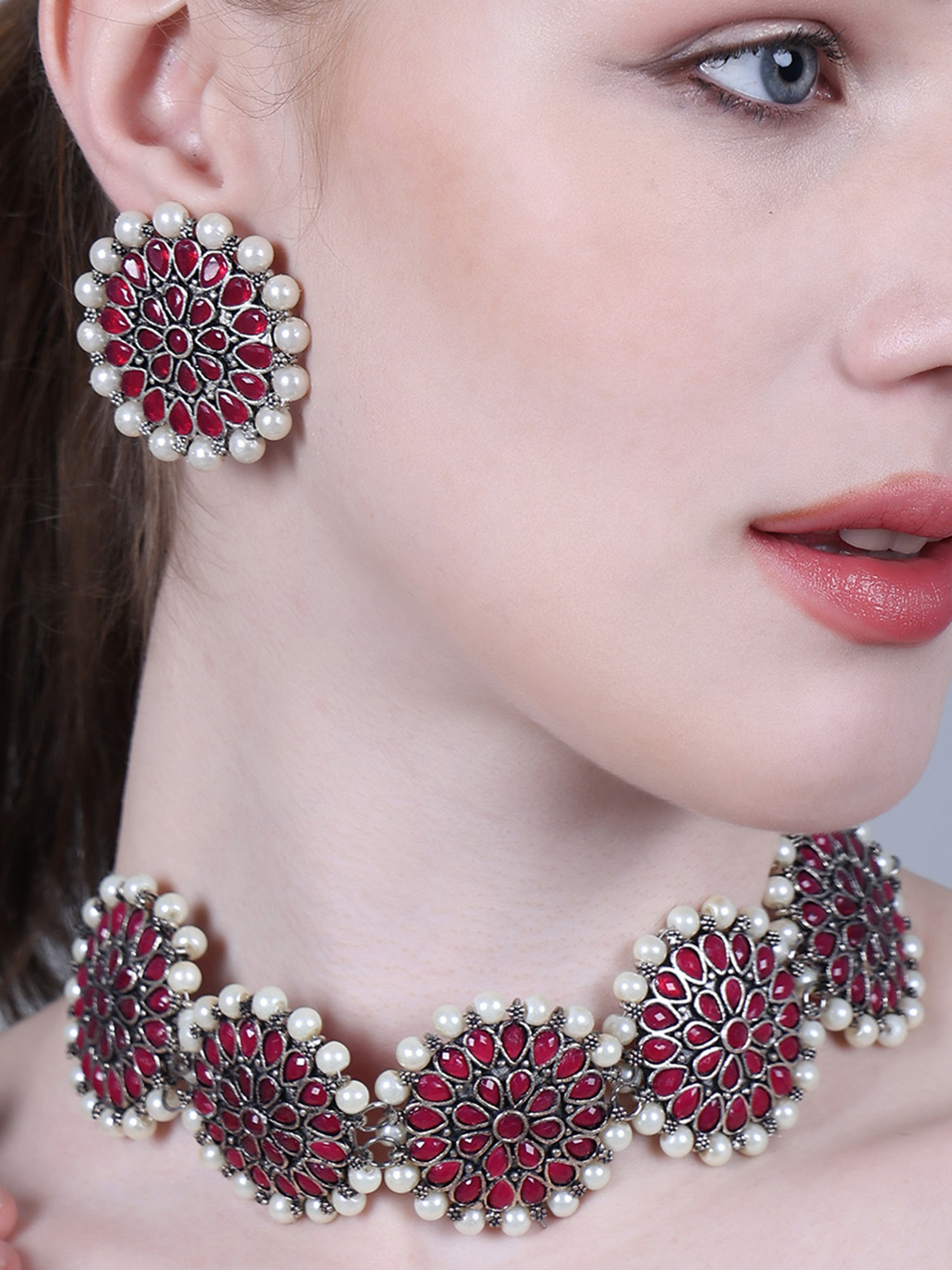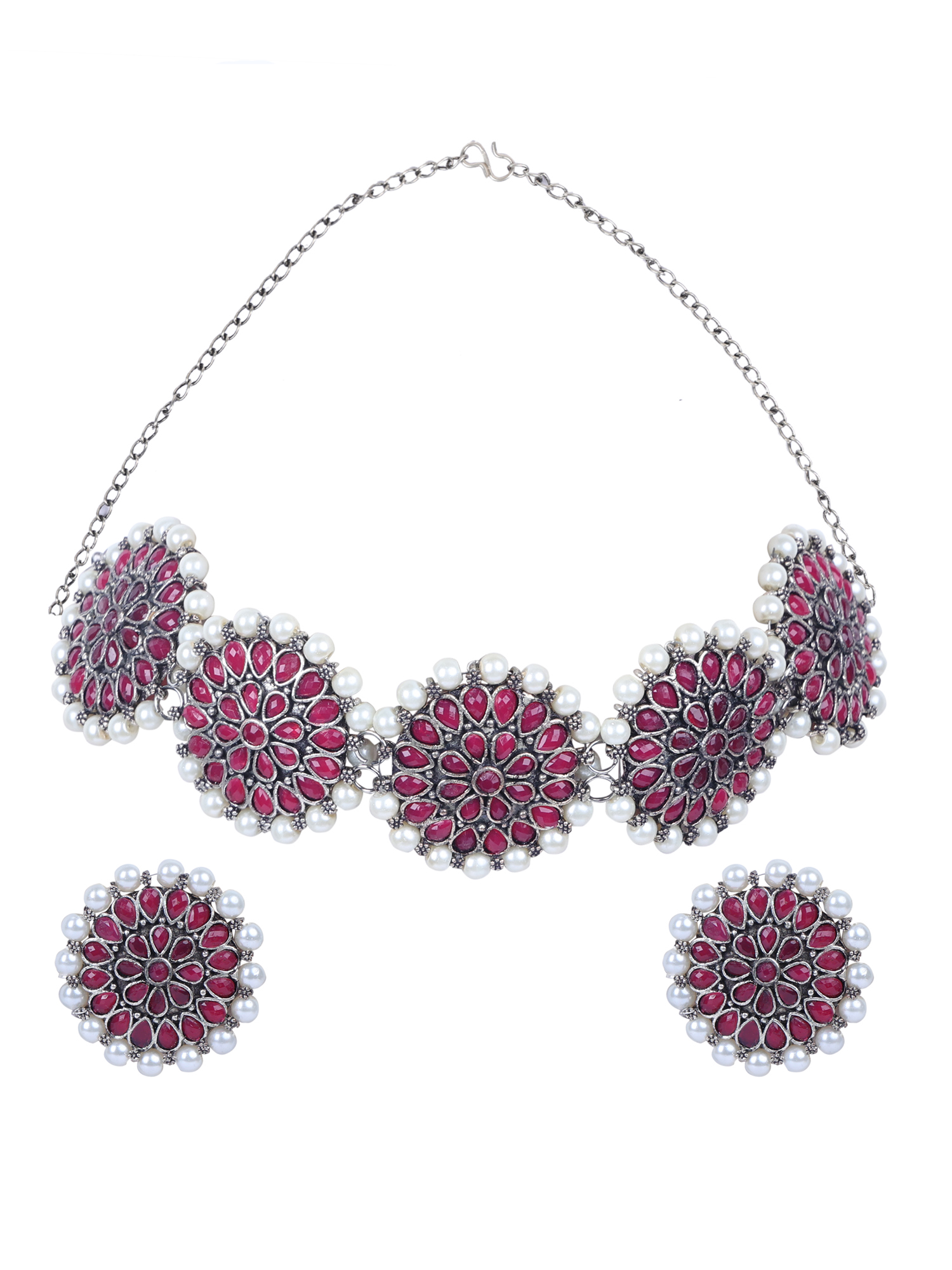 Classic look Silver Oxidised Necklace set with earrings for women to wear,
