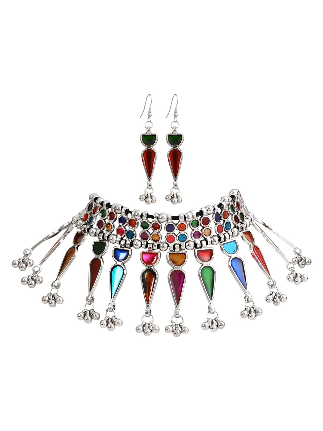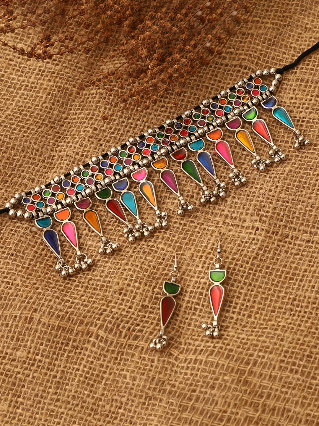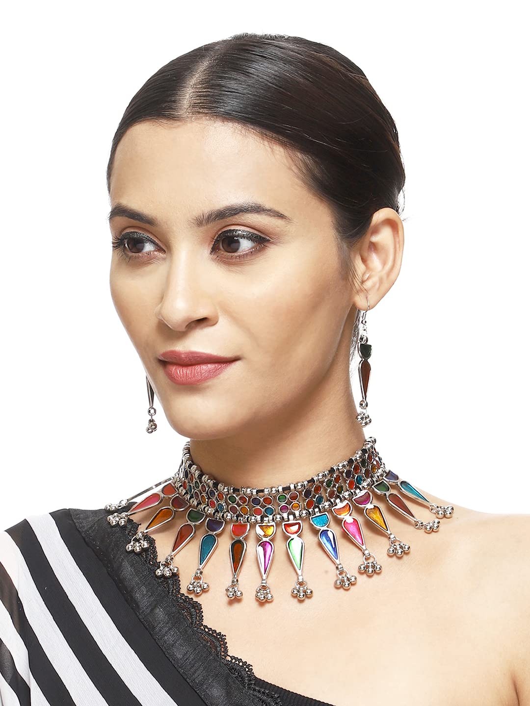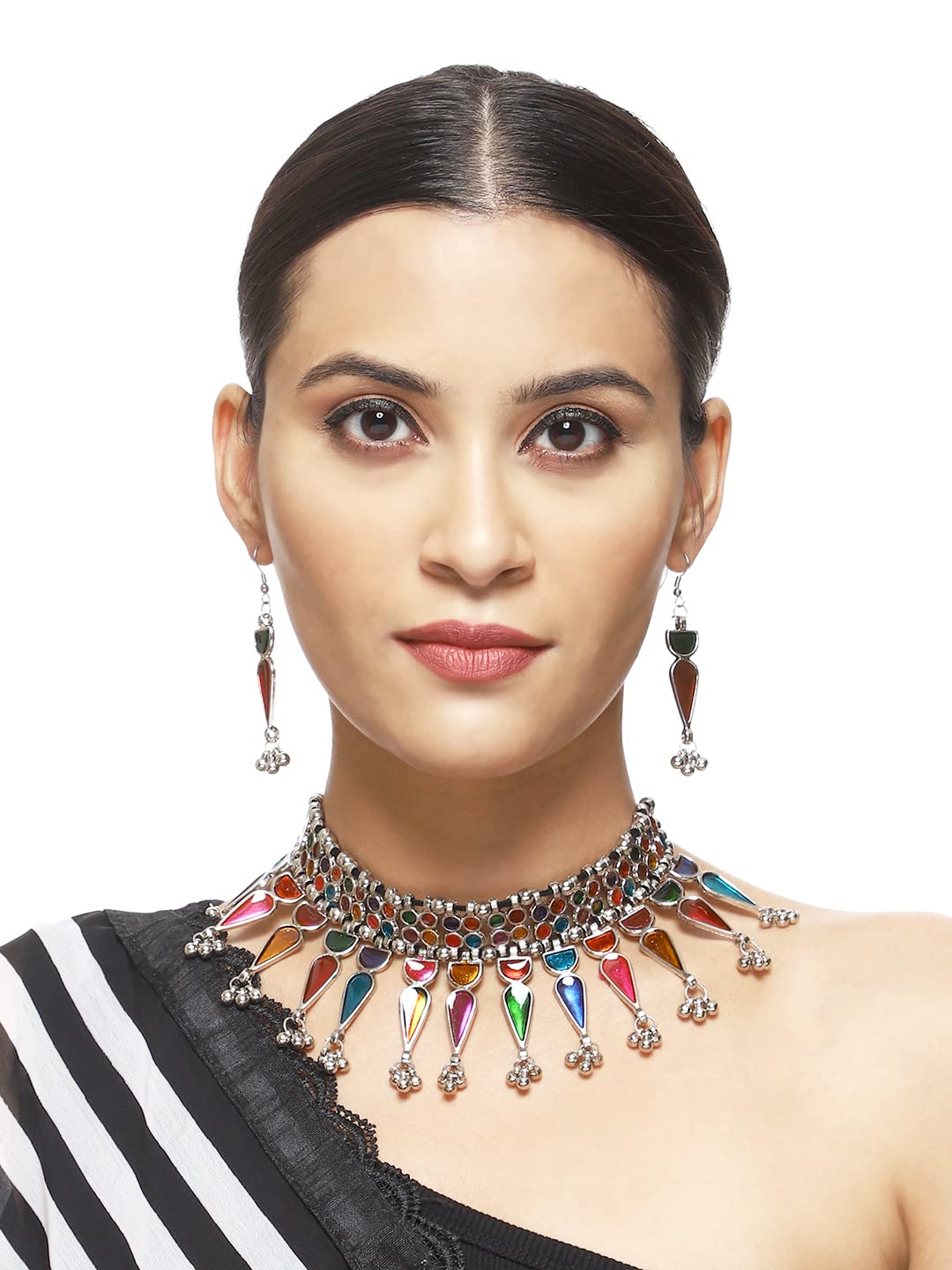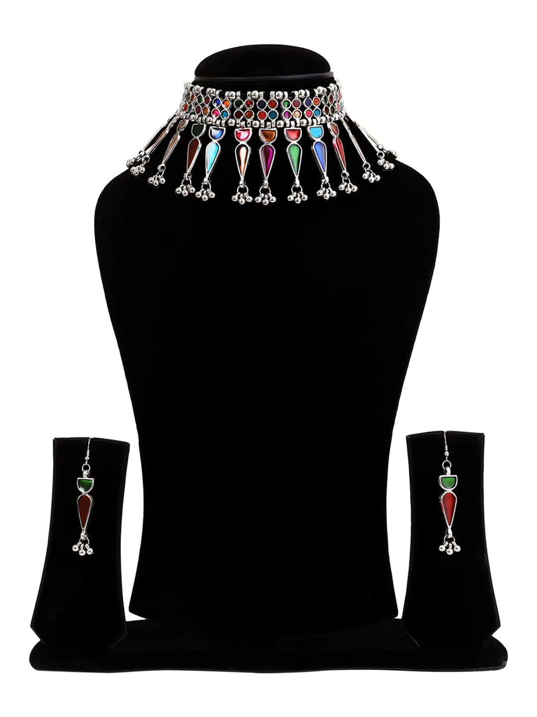 Classic look Silver Oxidised Necklace set with earrings for women to wear.